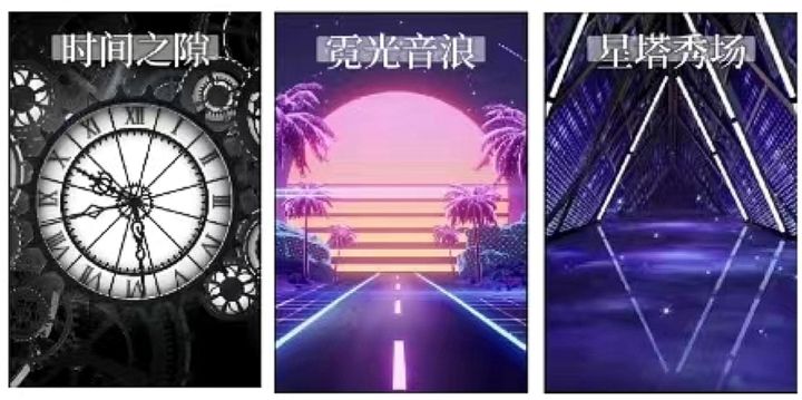 (建议仅供参考,是否购买请以个人喜好为准!!!)8.超现实以下背景排序不分先后顺序时间之隙:推荐,发条套售后,冷白色打光对最黑的一档黑皮友好,人物靠近中心钟表还会获得一种纯白的打光效果,适合黑白、暗色系穿搭,动态动作不错,有脚步发光特效,静态动作一般,适用现代、幻想风格。霓光音浪:不推荐,蒸汽波风格,泛粉色打光,动态女团动作一般,静态动作一般,调节滤镜可以拍出夕阳下人物黑色剪影的海报效果,