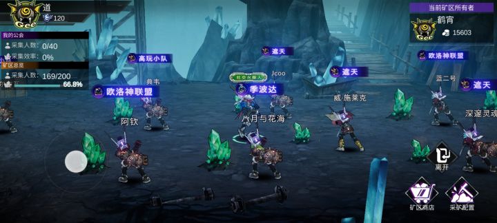 大部分新手在找到公会之后都不解如何采矿(包括我)。在摸索了一阵之后,你可以往里走,逐渐摸索除了你来的那面墙以外的另外三面墙。不需要看背景板,那真的就只是个背景。摸到最后面就能看到矿了(除非上面明说了采矿人数已达上限,就可以一直往里面摸