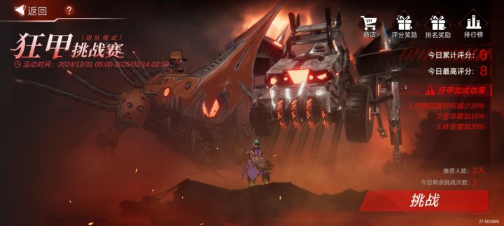 相信小伙伴们都遇到过这种情况,狂甲奖励拿不满,花钻还不一定能打到一千,这个时候就能用到我们送死流打法了。和小伙伴一起开黑,把输出分拿到手,最后双双送死,不扣次数还能加积分,快哉快哉。