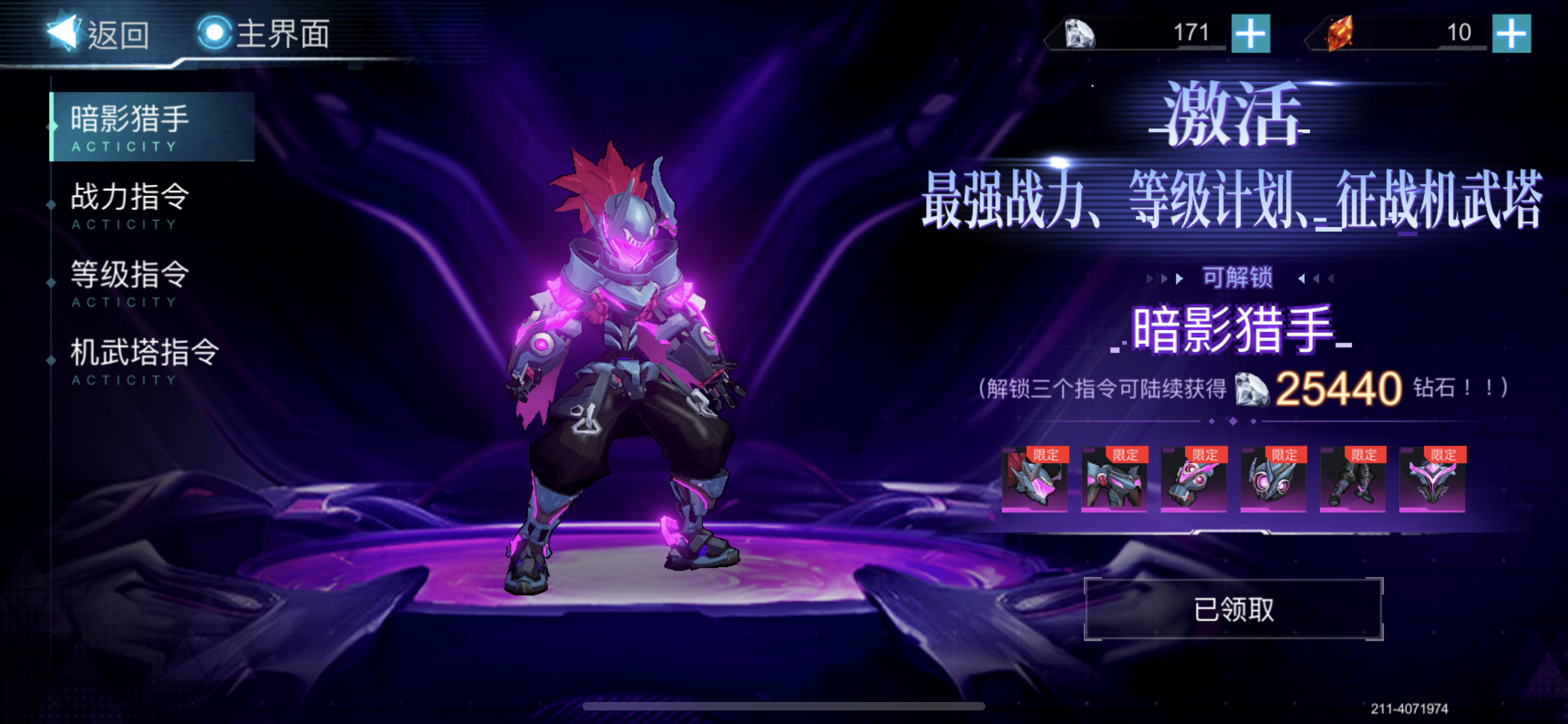 签到30天,买了月卡,最后一天了签到页面没有了,一个红色武装和近千颗钻