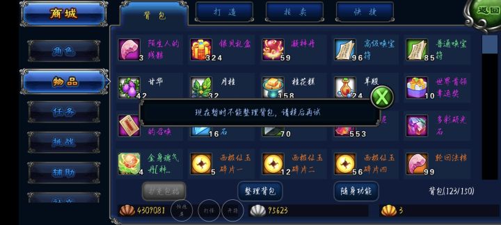 连续几天了,没法整理背包