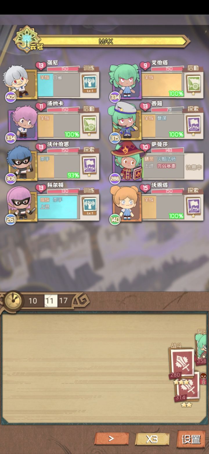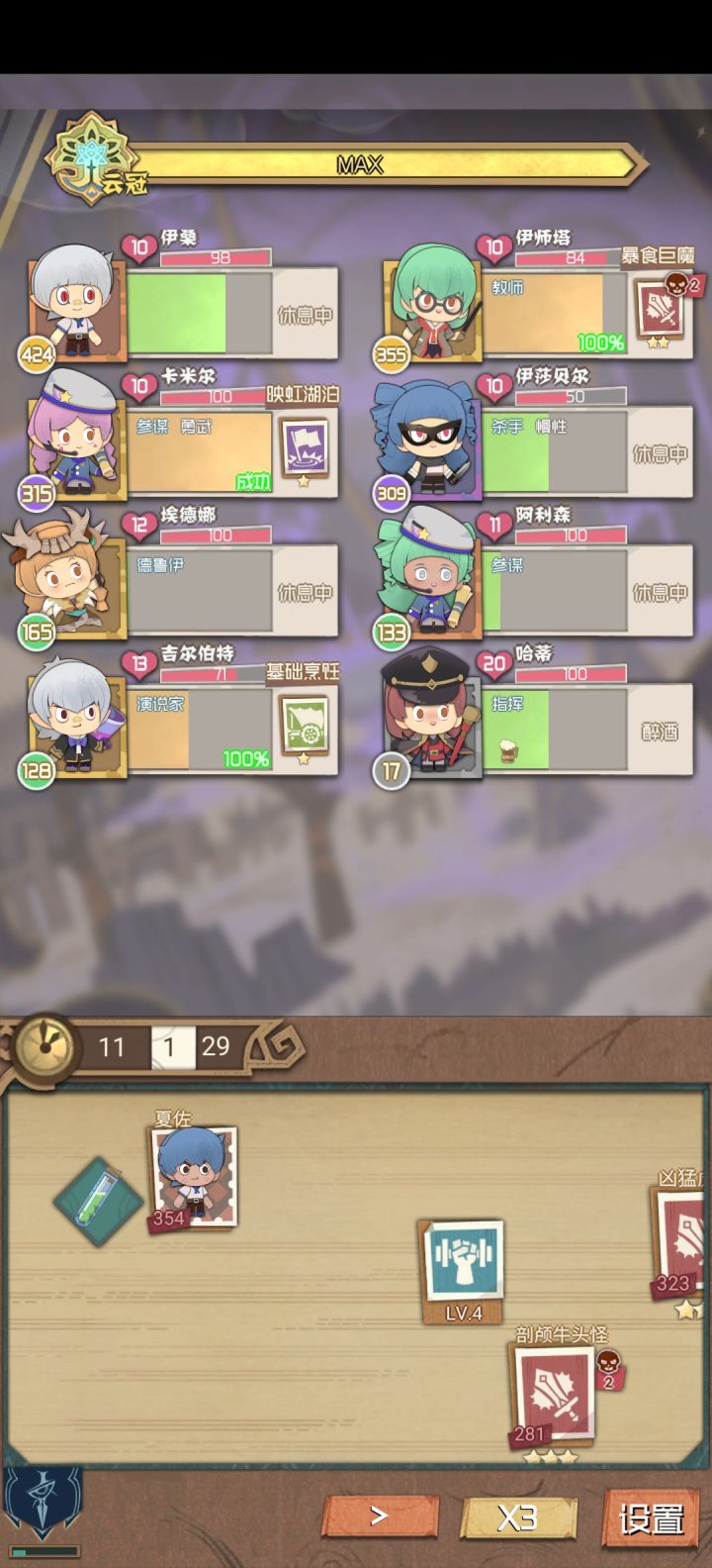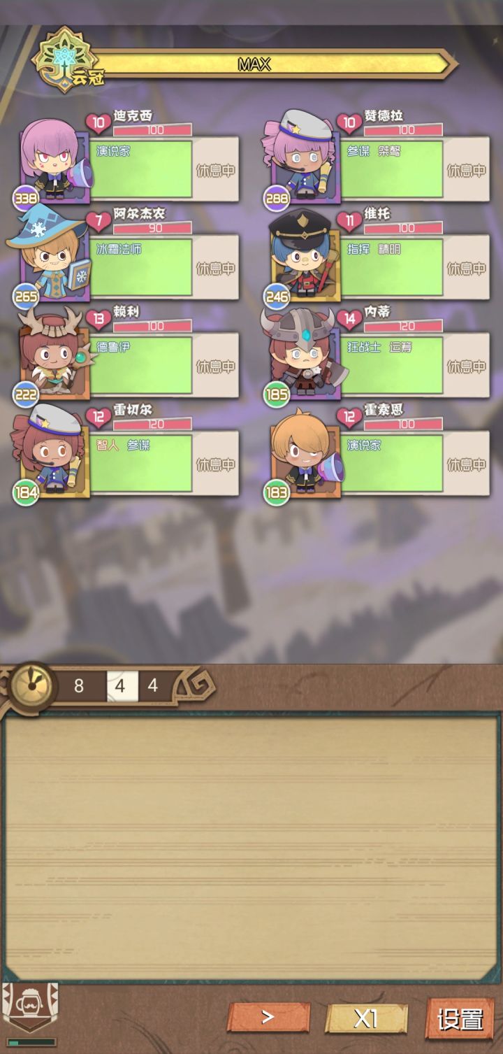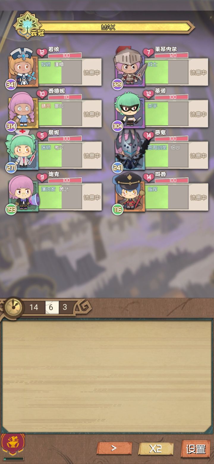刷了一下午,应该算刷通关了吧?给大家一个套路模板~~指挥+演说家+德鲁伊(参谋)*2+杀手+伤害技能+牧师~~打架的时候先用参谋和德鲁伊帮助演说家刷出技能,出了后全用来刷指挥技能就行了,伤害技能留一个配合杀手刷一刀,牧师技能留一个复活用