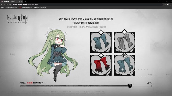 No.X正在进入诺亚内网...... [信号源1]获取████守秘人档案中...... 正在加载...... 守秘人【七芒星】战斗记录、角色状态已调取...... 守秘人签名: 「贵安主人,我是新来的女仆七芒星,请多指教。」 ———守秘人持续招募中——— >>>超现实题材SRPG《时序残响24/36》现已正式开放预约! 预约通道:https://www.taptap.cn/app/218492