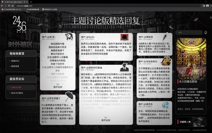 时外暗区速报《TapTap2023游戏发布会信息截获》 No.X为主管截获重要视频一段,关键词【燃心为锚|概念实机视频】 前方为您读取▋▋视讯…… 链接中…… “准备好了么?” “那就牵着我的手吧。” “时间已经不多了。” ———守秘人持续招募中——— >>>超现实题材SRPG《时序残响24/36》现已正式开放预约! 预约通道: 官网链接: iOS预约: >>>守秘人情报交流平台 官方玩家①群:1