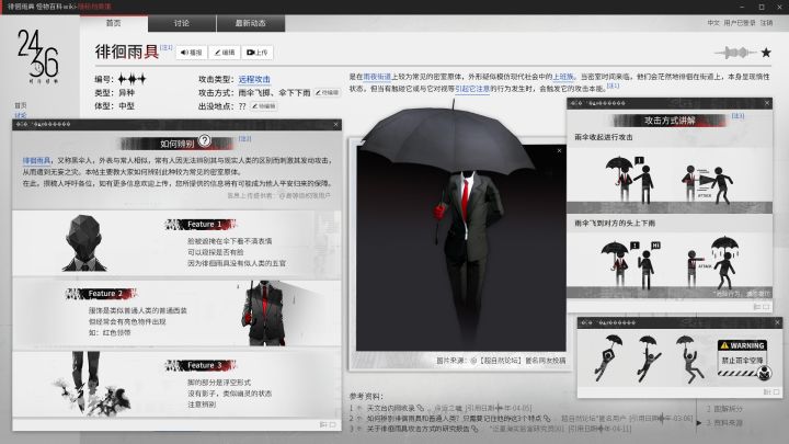 [提醒]隐秘档案馆已完成站点修复,历时36小时在等待期间的loading小游戏中,约65%的主管识别出真正的密室原体档案调取成功,请查看>>>*若您有更多相关信息欢迎 [编辑] / [上传] 以补充该词条,如无法点击请直接在评论区中进行留言,No.X会对关键信息进行爬取和甄别。┃徘徊雨具 人形拟态,雨伞进攻,有收放两种形态的密室原体......[展开↓↓↓]待补充词条:[出没地点] [