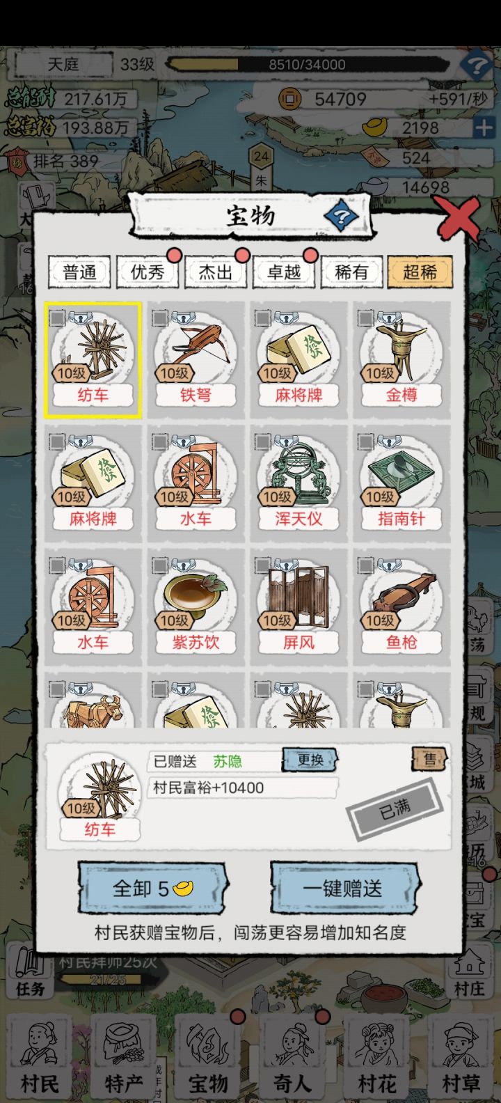 宝物联系升红色和橙色的,游历选择10元宝,但记住保持足够的元宝,别让那些快要定居京城的白眼狼拿走了,哈哈哈哈