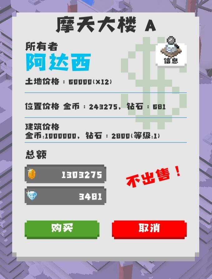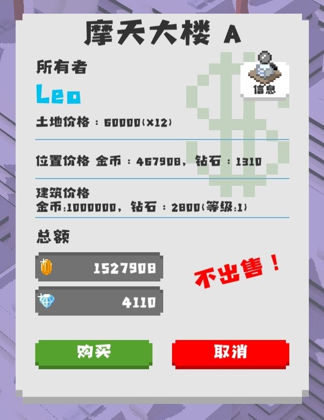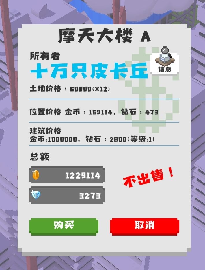 建造大型建筑的时候,如果金币够,钻石不够的话,会提示建造不成功,然后被扣掉相应的金币!比如你现在有200w金币和2700钻石,要建造摩天大楼,会提示你钻石或金币不够,然后扣掉你100w金币!官方赶紧修复下哦,已经被吞了300w金币了