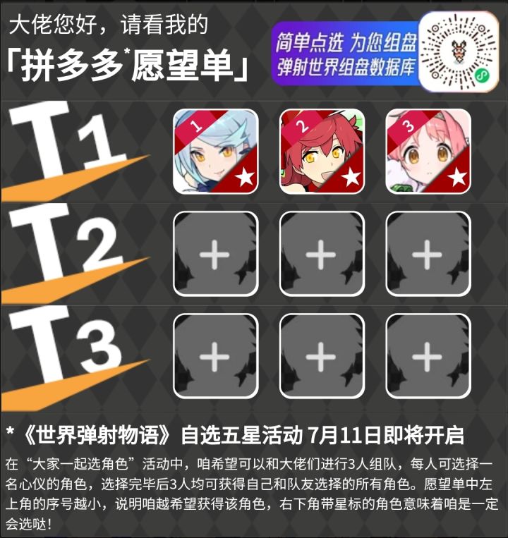救救孩子吧,T1一二号必选,三号位可以商量(图二里面的角色都可以)