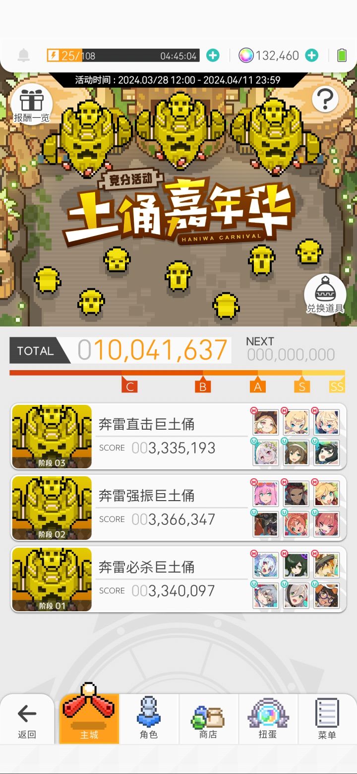 本来第一天打完都准备放弃最后一档奖励了,拖到倒数第二天没忍住凹了一小时拿满了火-c真是凹到头皮发麻,生存压力贼大。主位只洗了一个17.5充,开局校王女开技能后必须快速三个pf3,赶在麻痹结束前咏02满充放技能躲过麻痹尽兴而归,搓搓手期待下次土偶到来~