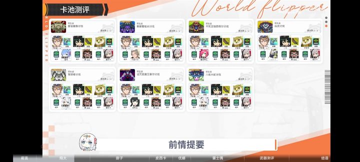 数据来自b站棉被第1个指的是强度,第2个指的是抽取优先度超>极>高,必>极>高>较>适马娘:周(高适),铃鹿(高高)素晴:达克妮斯(高高)第3期泳装上:泳翔太(超极),泳厨(高极)第3期泳装下:泳斩铁(高较),泳百合(超高),雷炮(极高)剧情限定:卢卡(超极),绿舌头(高适),水贼4星(超)百兽王冠:老狮子(超极),操里(高较)第三期万圣节:绮拉(超极),绯河4星(高高)黑草: