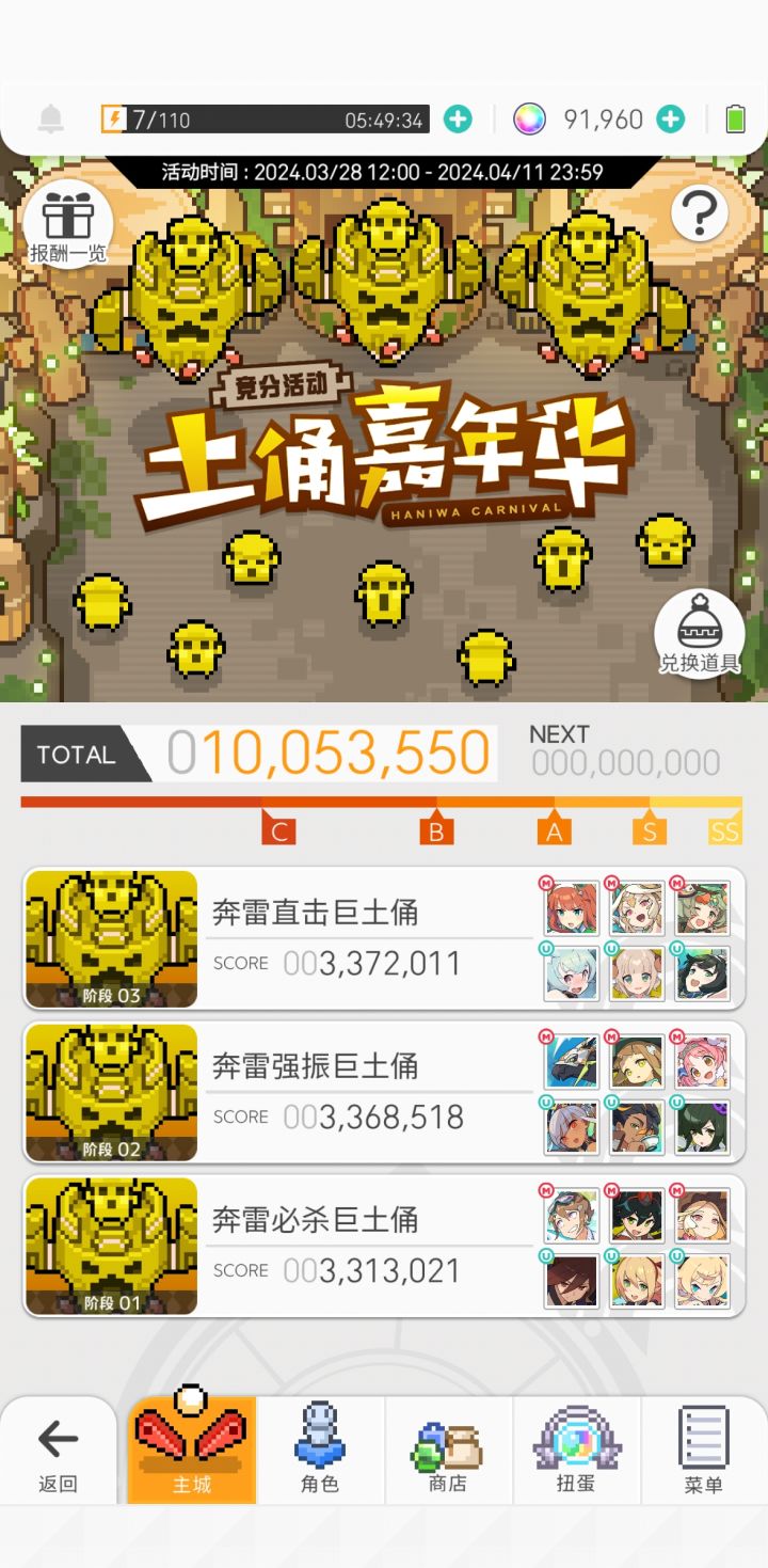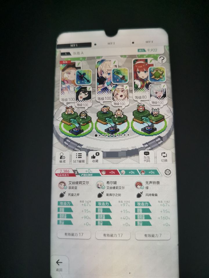 看了白鸢大佬的视频配的盘子,原本还挺苦恼的,没想到一次就过了。图上盘子依次是直击,强振和必杀。基本都是AOTU过的放心。直击土偶注意等左上角的土偶出现弱点在开启自动技能,打的时候建议开一倍速自动。(铃鹿的武器最好是天同枪,我没有用的风将盾,土偶给的哈尼海耶也可以,注意是浮游加直击攻击的武器)强振土偶一号主位和sub位尽量六版满,就算不满也要开了六版,建议一倍速自动,小手主动点一点防止AOTU