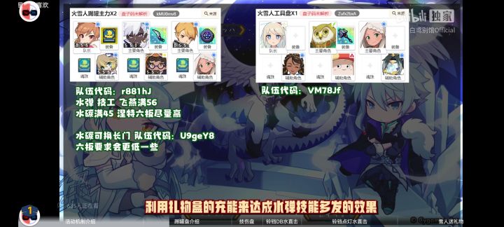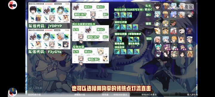 主C飞燕的能力5要点满,伤害性六板多点一些更稳定蕾姆双C(水碳换长门工具人可降配)主Cx2:TTM8Fj配水碳的高级工具人x1:VMfTmC换长门后的中配工具人:BQZ5hm龙拳双C(水碳换长门工具人可降配)主Cx2:1F8iJe配水碳的高级工具人x1:VMfTmC换长门后的中配工具人:BQZ5hm蕾姆单C主Cx1:TTM8Fj高配工具人x1:WYt53X中配工具人x1:E