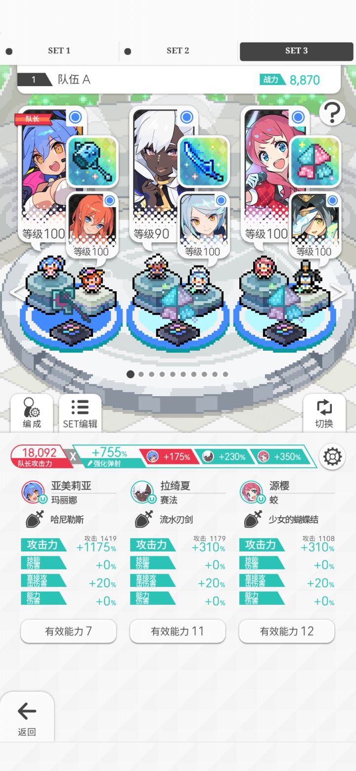 关于暗直击的珠子选择ing首先说一下 暴是暴食之枪提是提尔锋 并且这次计算的伤害都是加成效果拉满时的伤害从图上看出 貌似1提1暴是最优选(?)毕竟卡菈用提尔锋提升太小了 自身攻击加成太低 反而用来延长贯穿时间的威龙自身攻击加成高(因为威龙玛纳板有个效果是延长加强效果时间 所以我把奥库斯给他了😖😖😖)我们把卡菈的武器和珠子和威龙调换 在看伤害就可以知道.....诶我还没算呢 算这东西比较麻烦 大家给我一些时间呢