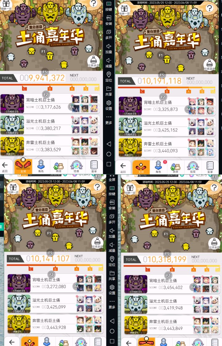 暗的用射击pf挺难凹分,所以在其他两个土偶要尽力抢分,雷的很简单,连击风很轻易的可以进30s,光的要点手法,一阶段开白猫礼铳最大距离枪两个可以过,二阶段用灵触技能+pf打掉,三阶段在开试炼之前用礼铳一枪过可以1分内