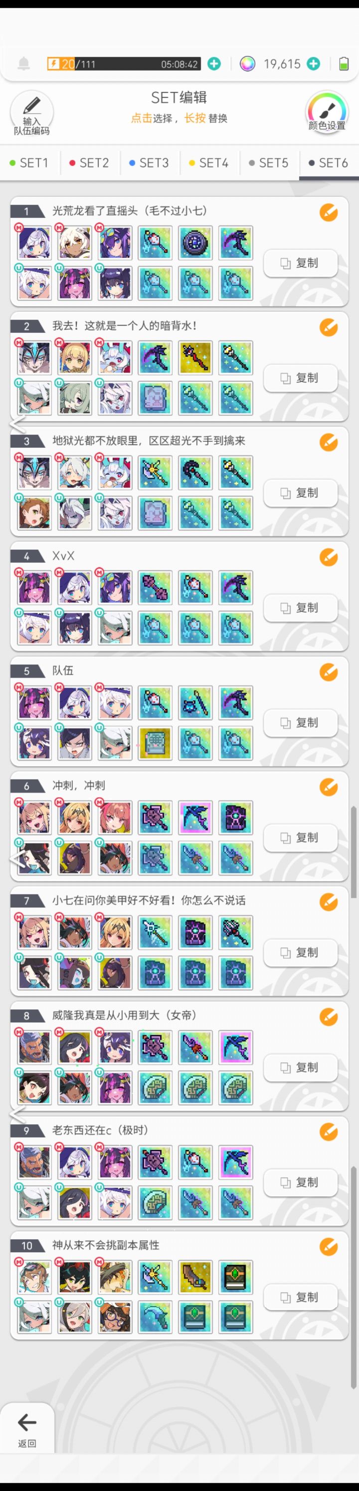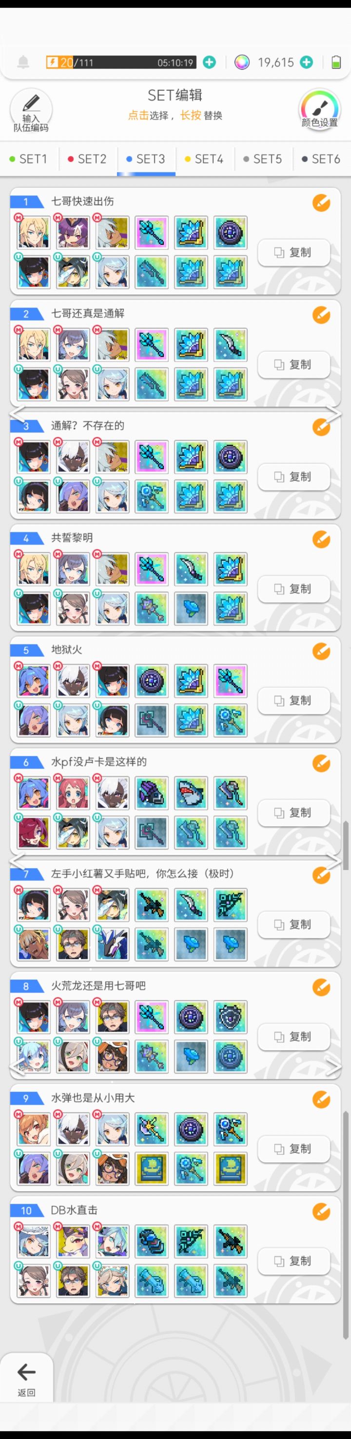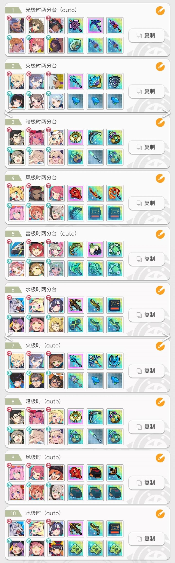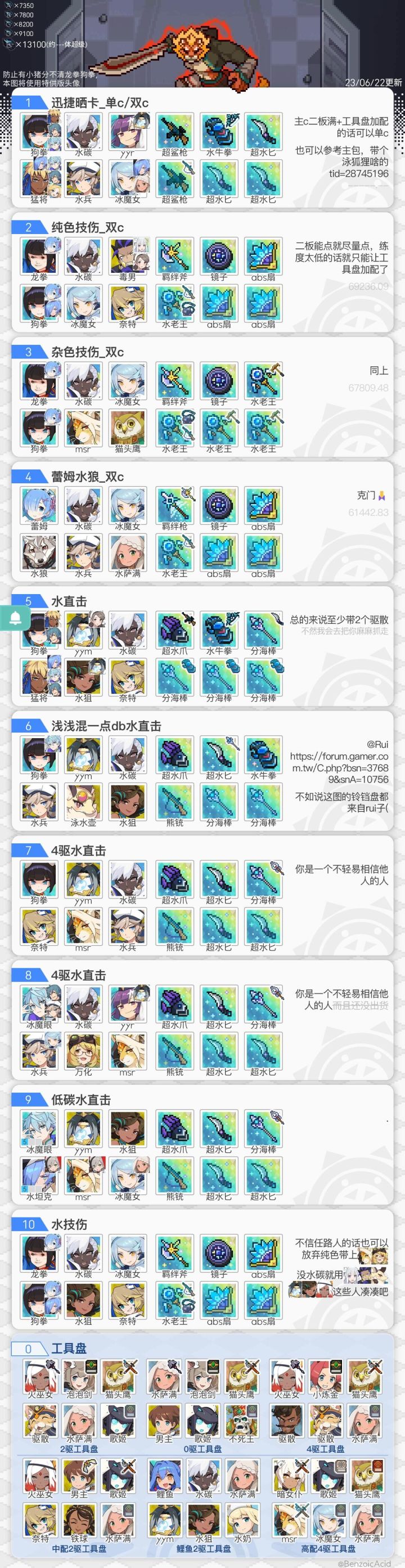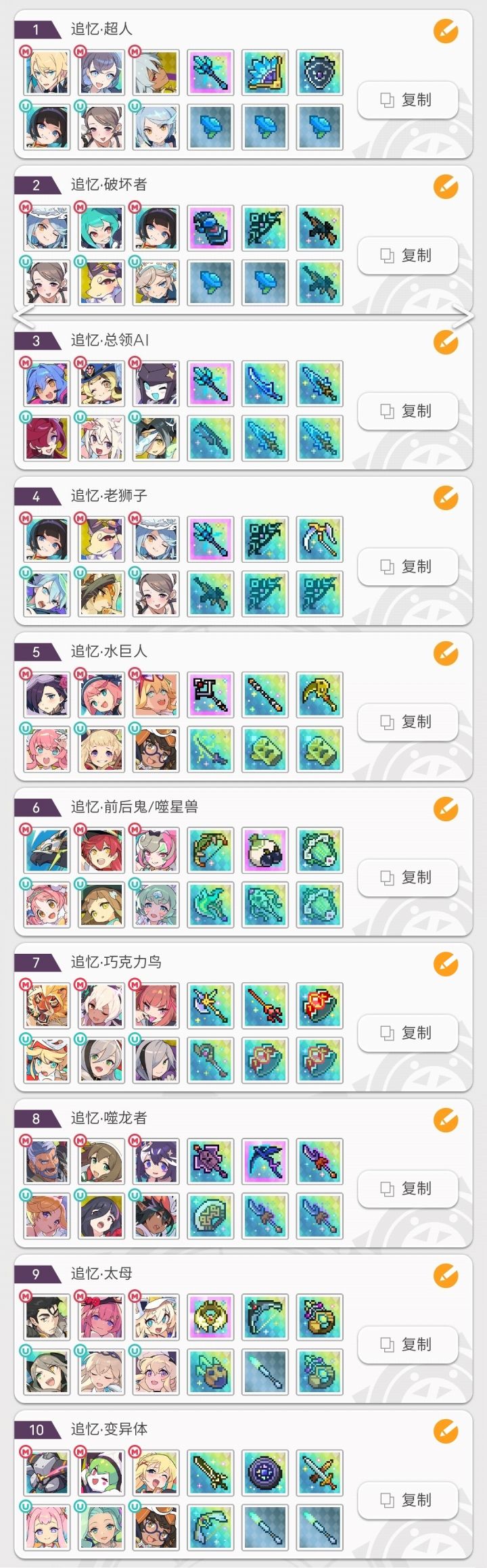 由于缺少部分角色,部分盘有更好的替换#世界弹射物语 更新了一个七哥地狱本通用盘,地狱暗50秒,其它8秒。修改了部分追忆极时本阵容,提升通关速度。