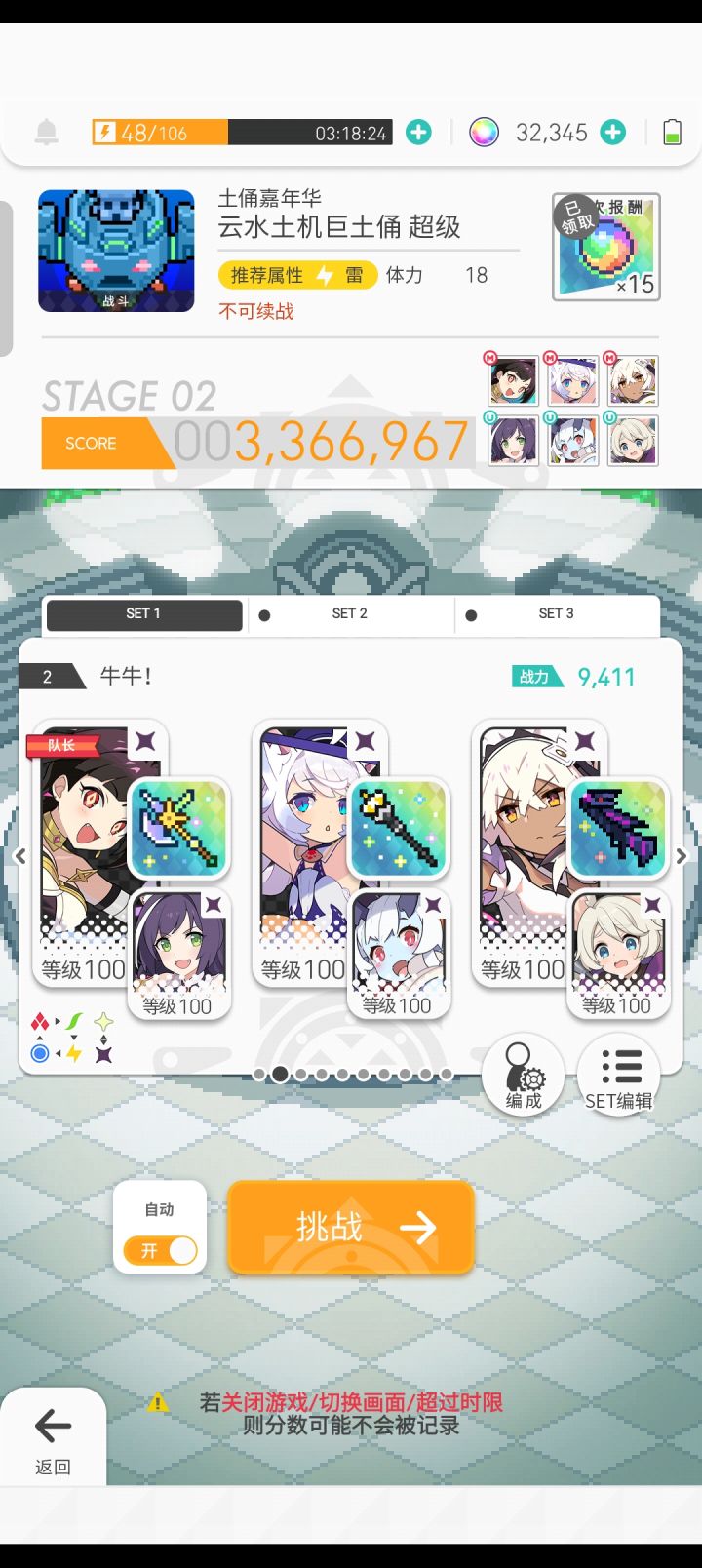 水土俑潮盘(有翻车率,我是打了3把第四把成了)暗面包太强啦!ps:雷队凹完想试试自动,于是试试暗面包结果还比我原雷队分高😅