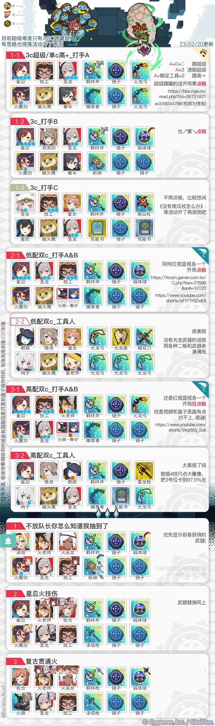 圣女跨属替换南瓜杖-蛇镜:前提你能保证每一次都破弱成功,南瓜杖是破弱失败了的下限保证,用蛇镜上限能高点,不过下限会更低;暗gay-火狼:经典互替组,用火狼的话因为火狼的冲刺提速,要把酒奶的充能书换掉,随便换个加伤的都行圣女-星奶/阿拉丁/蕾姆:用阿拉丁或者蕾姆就一定要用蛇镜了,用星奶的话基本上没什么差别,辅助pf轴会比圣女射击pf更顺畅一些,不过伤害会略低一些,算是提高稳定性,但是降速一轮