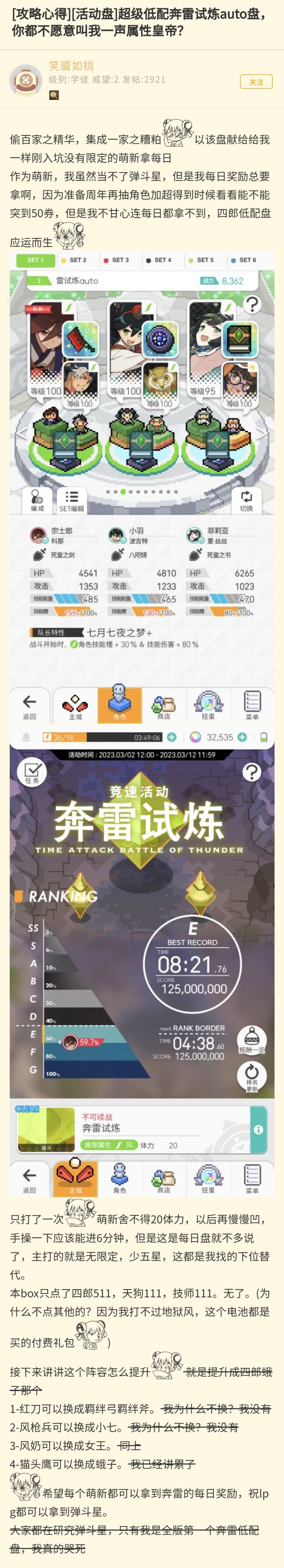 —12.16睡前尝试了一下蕾姆的盘子,随着蕾姆的落地应该能拯救不少萌新的地狱火吧—12.14 没想到这个帖子还能更新,因为有人问到所以就试了下地狱风单星忍的盘子,结果还真可以,于是更新过来(更新完之后除了地狱火用了两个五星,其他都只用了一个五星那为什么我刚开始打那会卡了恁久)—12.12 更新了一下,最后成功使用两个及以下的五星ss了所有的地狱本周年入坑的萌新在抄作业的路上卡了各种限定角色