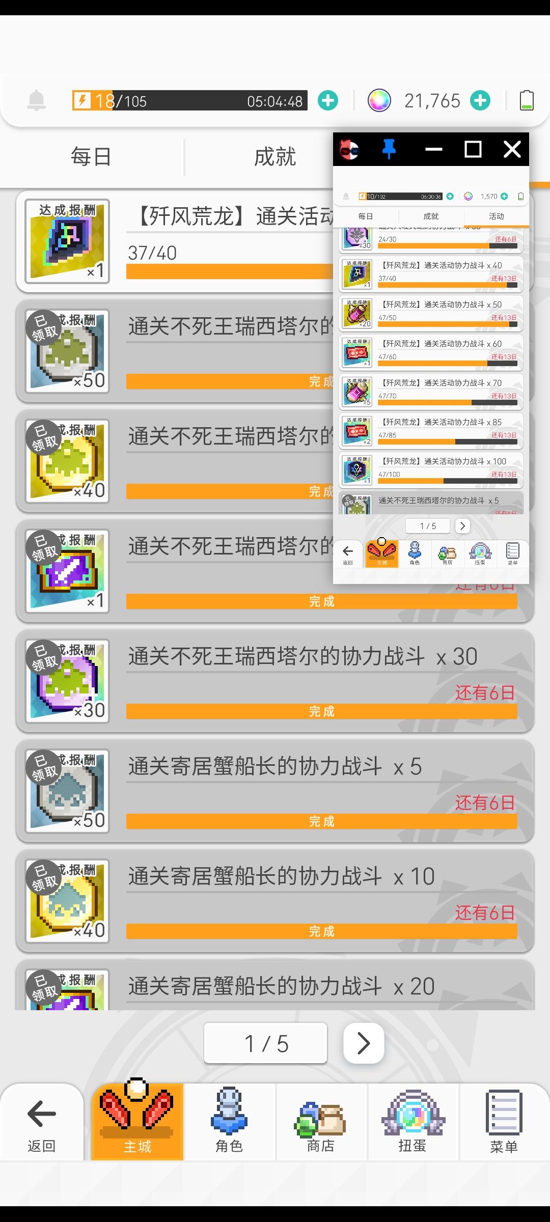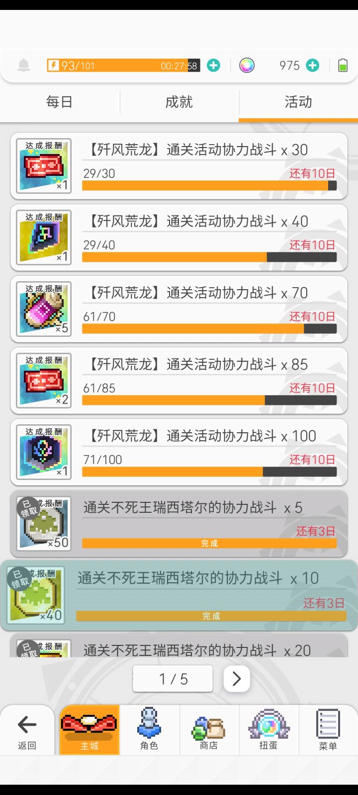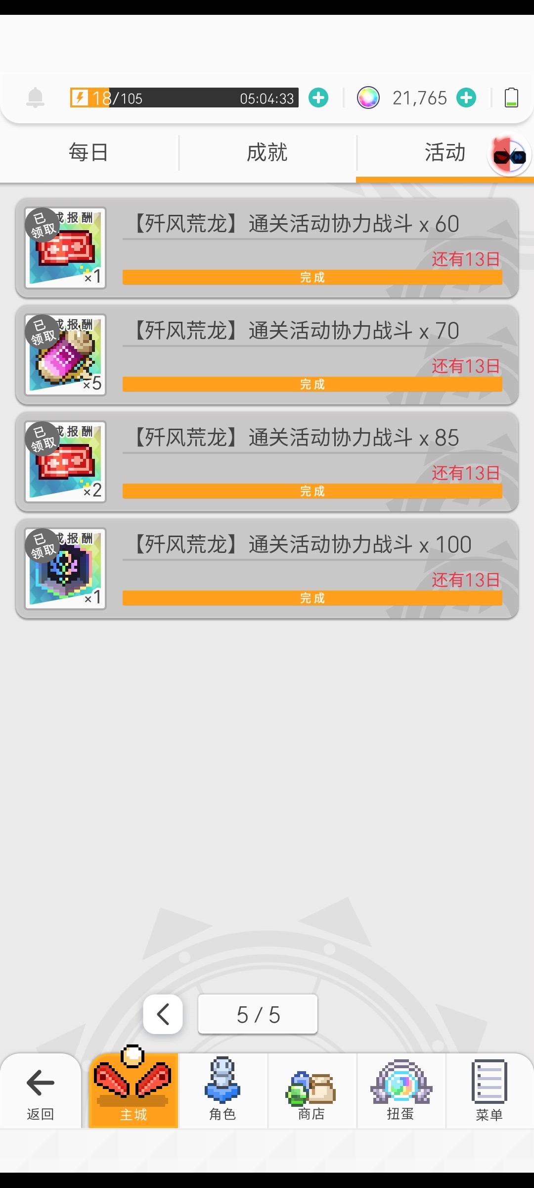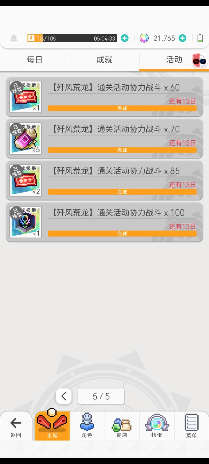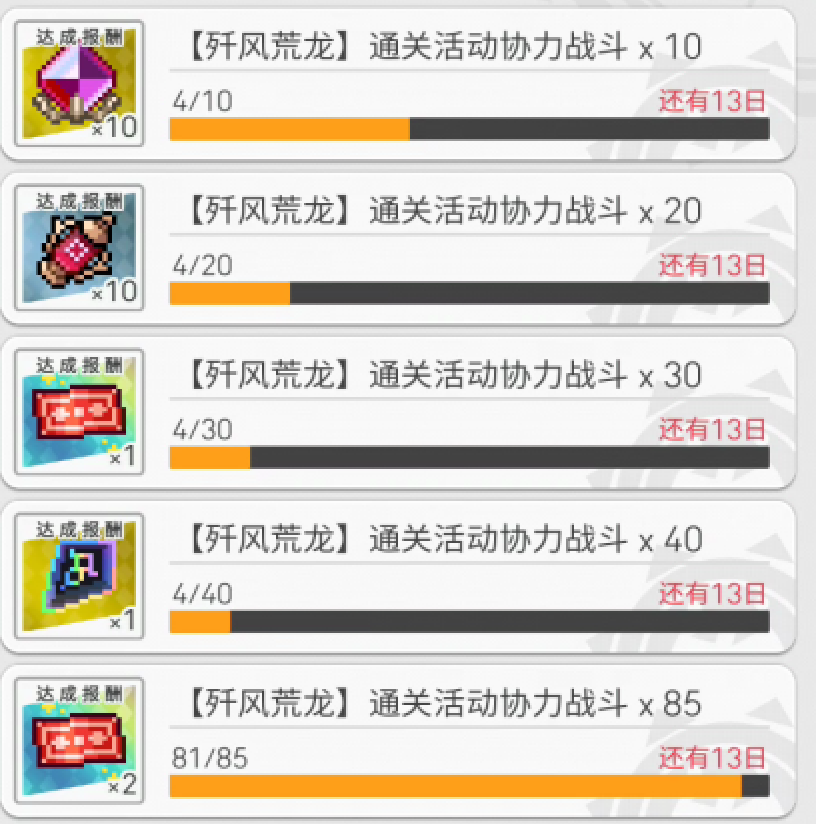 刚发现还没开始活动就已经完成了50-100的协力活动,问题是高级材料不确定,但是5星破晶和单抽卷我根本没拿到,背包里的数量没有变化。