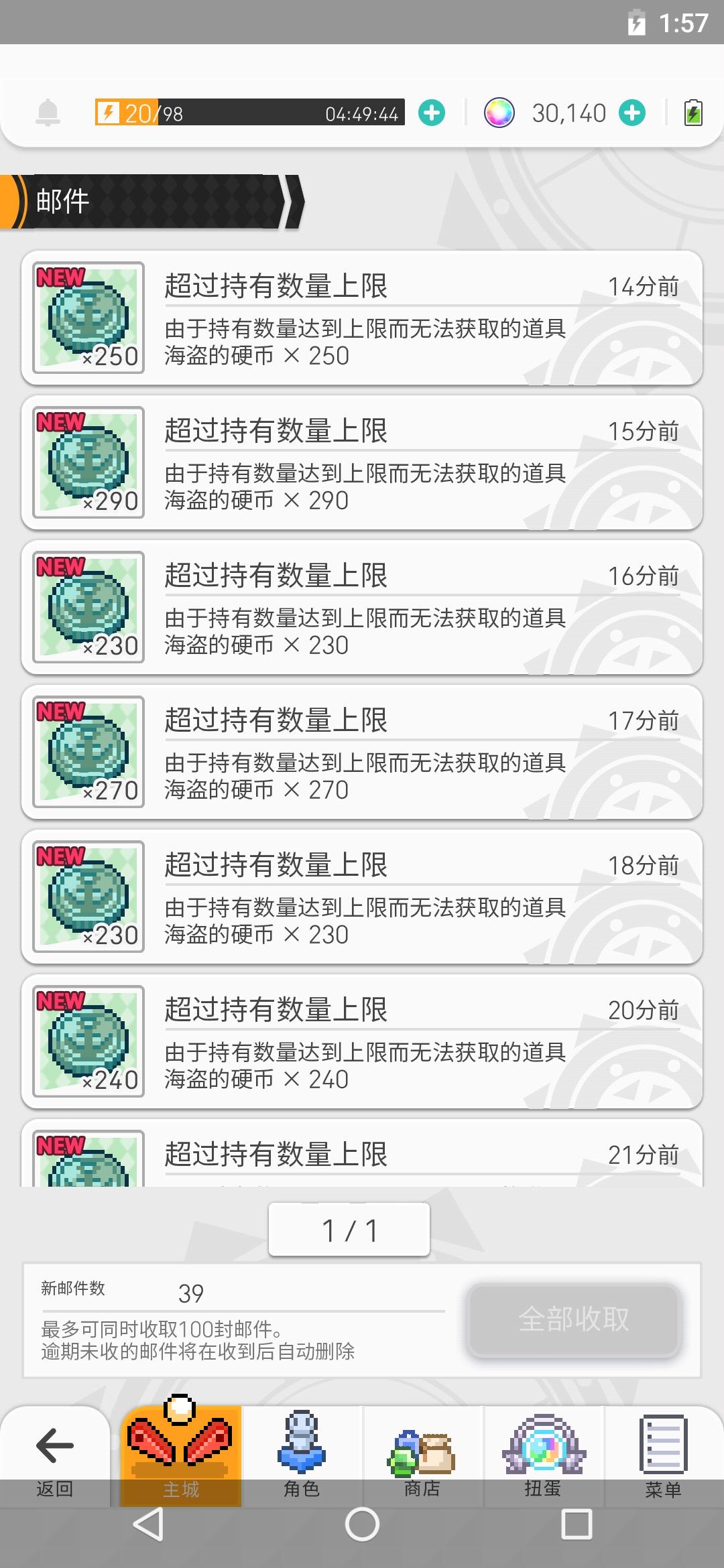 出bug了吧,只要水滴超过100封,后面的邮件就领不了了