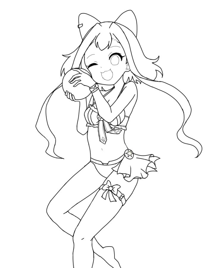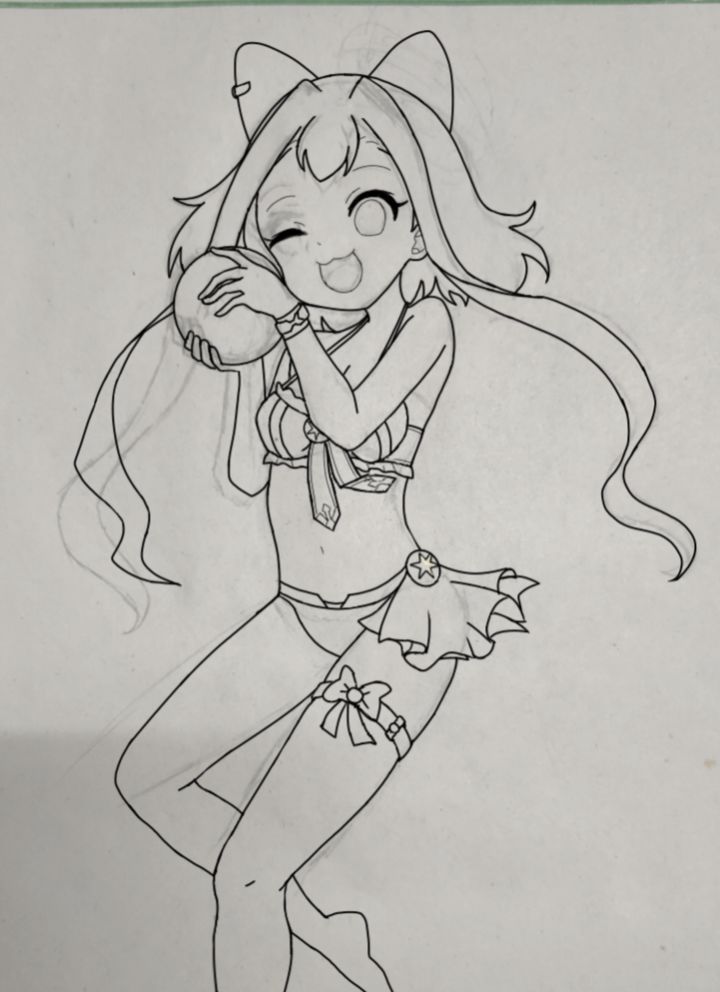 最近都没氵帖,画个泳装圣女画着玩大家看个乐呵就好,比例我不清楚,颜色瞎上的,阴影什么的都是随便加的,背景懒得画了🌝