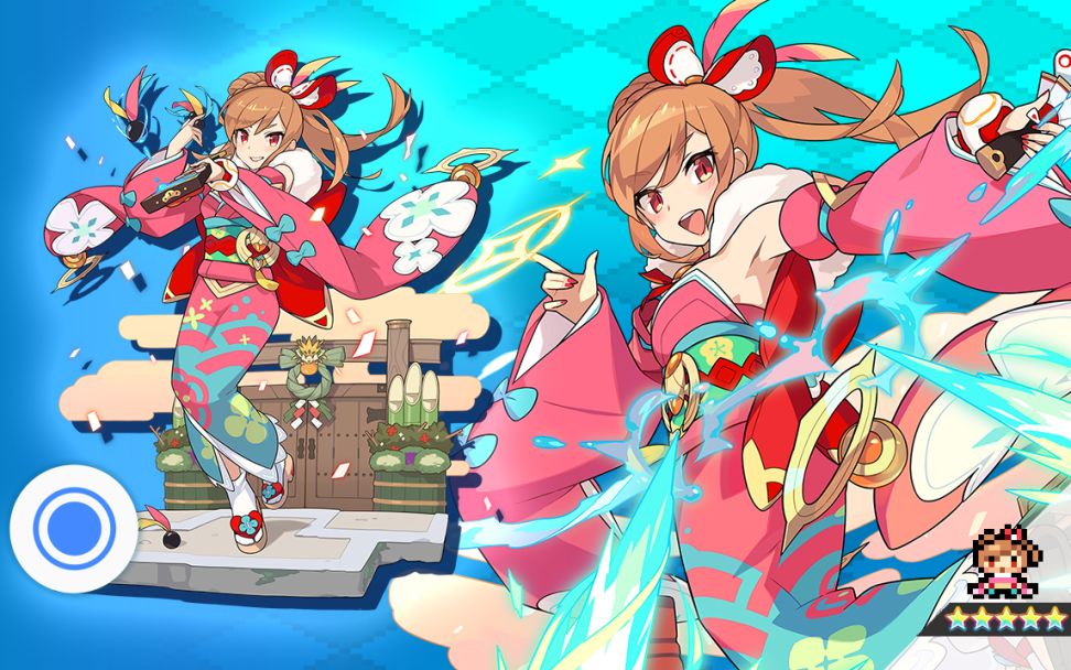 有点迷糊的懦弱魔导士。配合新年的到来,她享受着异国的服装,但或许是因为不习惯,有时会摔倒并把神签撒了一地。✦属性:风✦类型:辅助✦技能:命运摇摆通过抽签试试运气!分别以一定概率赋予队伍全体攻击力提升、强化弹射伤害提升、技能伤害提升效果/FEVER槽增加。“新年快乐!那个,我试穿了一下和之国的传统巫女服……适合我吗?”「恭贺新年特选扭蛋」限时进行中!
