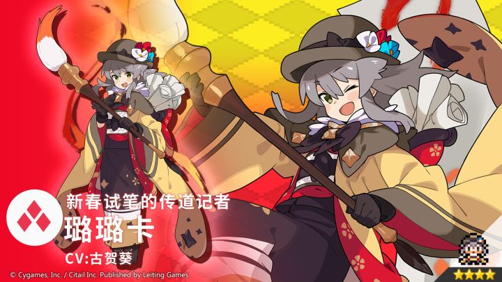帕尔佩布拉的月刊杂志《观察》记者。着眼于异世界的文化“新春试笔”。为了让帕尔佩布拉的人们能够接触到书写文字的乐趣,开始想要振兴书法。✦ 属性:火✦ 类型:剑士✦ 技能:为书法献上圣礼鼓起干劲,新春试笔!队伍全体获得强化弹射伤害提升效果。“我是月刊观察的记者璐璐卡!这次是新春试笔特辑!所以我会穿上特别服装为大家呈现!”「恭贺新年特选扭蛋」限时进行中!