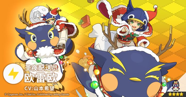 圣诞节上干劲十足地与搭档贝路伦一同奔走的配送员。虽然这个时期比平时更加忙碌,但对他们二人来说却是很常见的事。✦ 属性:雷✦ 类型:格斗✦ 技能:礼物恐慌取出闪闪发光的礼物袋,对碰到的人产生雷属性伤害 / FEVER槽增加。“我是骑兽快递员欧雷欧!圣诞礼物的派送就交给我吧!(啾啾啾~)”「圣夜祭特选扭蛋」限时进行中!