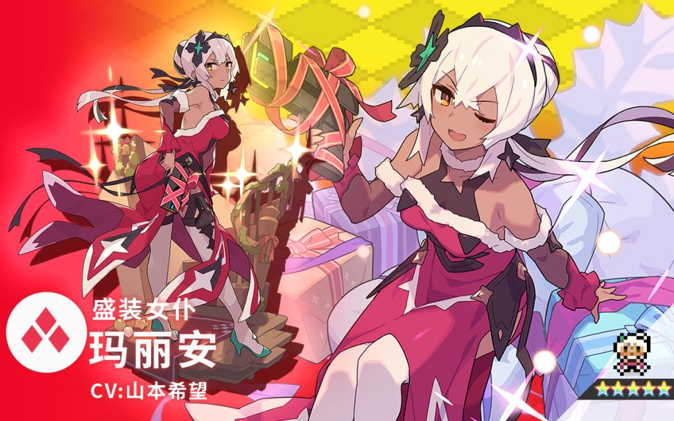 女仆酒馆的保镖女仆。从战斗到家务都样样精通,但这次她要穿上礼服,装扮成优雅的女士。✦ 属性:火✦ 类型:射手✦ 技能:致命礼盒向前方投掷的礼物发射激光弹,对命中的敌方及其周围造成火属性伤害 + 火属性抗性降低。“我是保镖女仆……不,我是礼仪小姐玛丽安。别一直盯着我看。总感觉有点害羞……”「圣夜祭特选扭蛋」限时进行中!