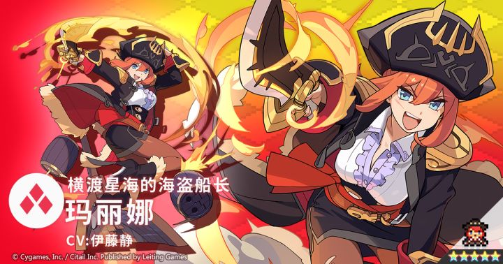 【角色介绍】⭐横渡星海的海盗船长「玛丽娜」(CV:伊藤静)率领海盗团“朱之刃”的女船长。虽然经常被人说粗鲁、没有女人味,但也有很多人被她热爱自由的生活方式所吸引。“乘同一条船的同伴就是我的家人。我一定会保护你们的!毕竟,我可是大海盗玛丽娜大人哦♡”更多信息请关注官方后续发布内容~