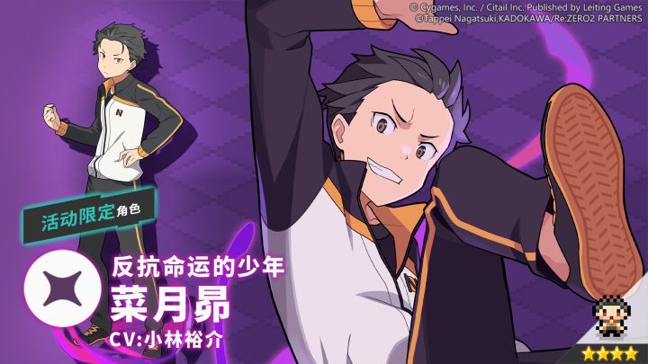 突然穿越到露格尼卡王国的少年。拥有一旦死亡就能回到特定时间点的能力“死亡回归”,并用能力帮助爱蜜莉雅等人闯过了种种危机。虽然胆小又谨慎,但到了紧要关头也会展现出勇气和胆识。✦ 属性:暗✦ 类型:特殊✦ 技能:无法言明的魔女诅咒以坦露能力的惩罚牺牲自身生命值,赋予全体队员技能伤害提升效果“我的名字叫菜月·昴!愚昧无知天地永存的穷光蛋!好久没说这句台词了啊……还有很多事需要拜托你们呢,
