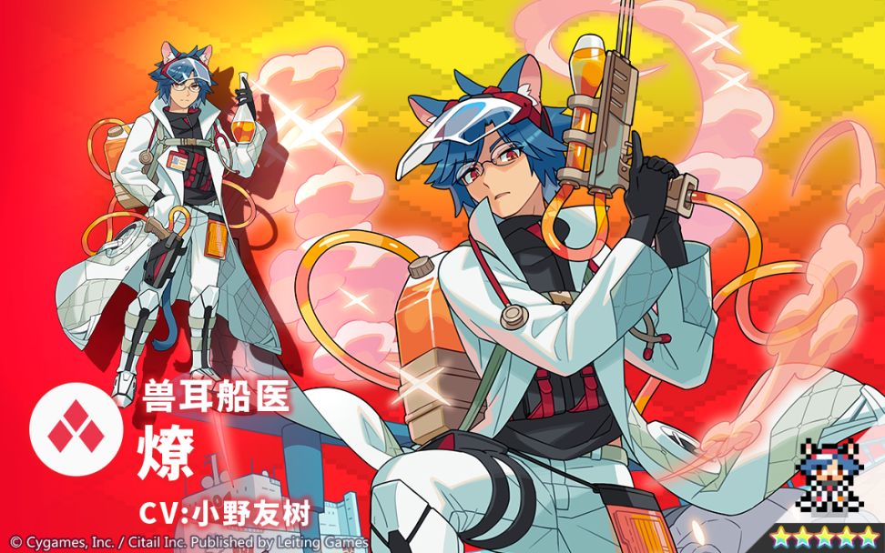 医疗船“无国界兽耳医疗团”的船长,同时也是一名技术高超的医生。为了让这片大海上不再有人遭受病痛,他今天也将乘上波浪。✦ 属性:火✦ 类型:射击✦ 技能:公平救治恢复参战者全员的生命值【对火属性角色效果提升】+解除1个弱体效果/以烧瓶枪向距离最近的敌人射击,对命中的敌人造成火属性伤害“我是“无国界兽耳医疗团”的船长燎……喵。即便是异世界的患者,我也会平等地为其治疗。”「新角色特选扭蛋