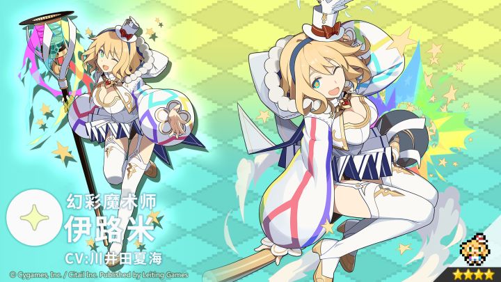 使用光魔法操纵“幻象”,令人们为之着迷的女性奇术师。实际上出生于上层家庭,为追逐梦想而离家出走。✦ 属性:光✦ 类型:辅助✦ 技能:七彩幻光秀召唤七彩光球,赋予撞击到的敌人及其周围光属性抗性降低效果 / 击中时FEVER槽增加 / 回复剩余生命值最低的队伍成员的生命值【对光属性角色效果提升】。“女士们先生们!伊路米的魔术秀要开始了哦♪”「新角色特选扭蛋」限时进行中!