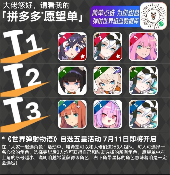 有人一起选角色吗,我要礼铳,礼黑,其他随便(萌新一个)