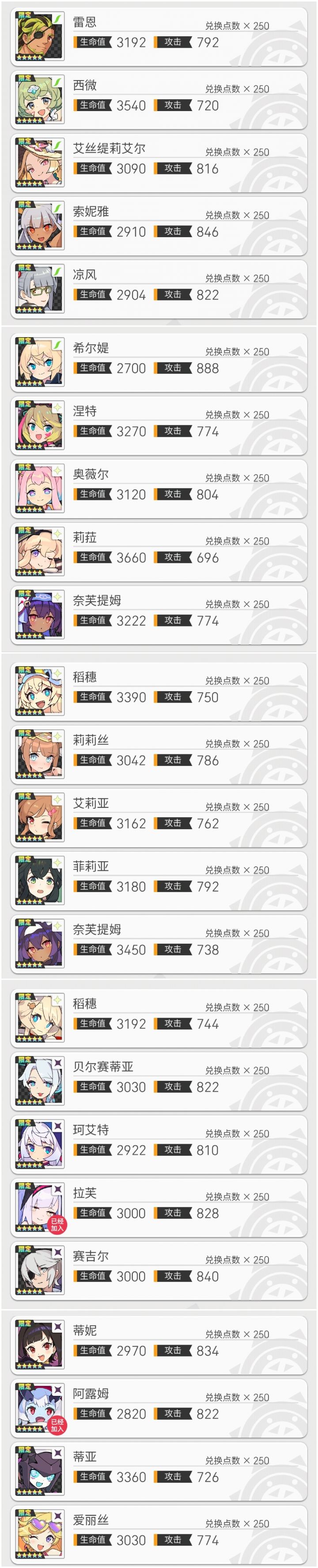三自选:初始池自选(还算有思路就是不知道暗叔/风奶/船长选哪个)常驻池自选(即新手冲刺扭蛋礼包,没思路甚至认不全)新手群星扭蛋井(第四期)五星池及配队如上,感觉也就雷F能拉拉其他都缺胳膊少腿以及后面的自选和超得,佬们给个思路吧,退坑太久思路给版本优化掉了T_T(因为图片限制所以没有放自选池内容了)