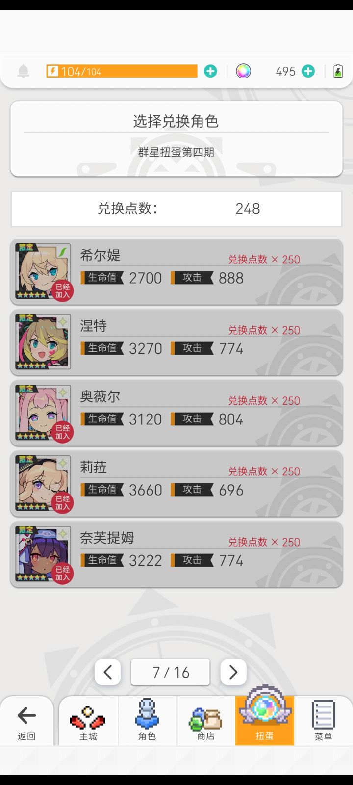 刚玩两个月,box不多,第四期想捞些角色所以梭哈了,这些没有的角色中大佬们指导指导兑换哪一个更有用