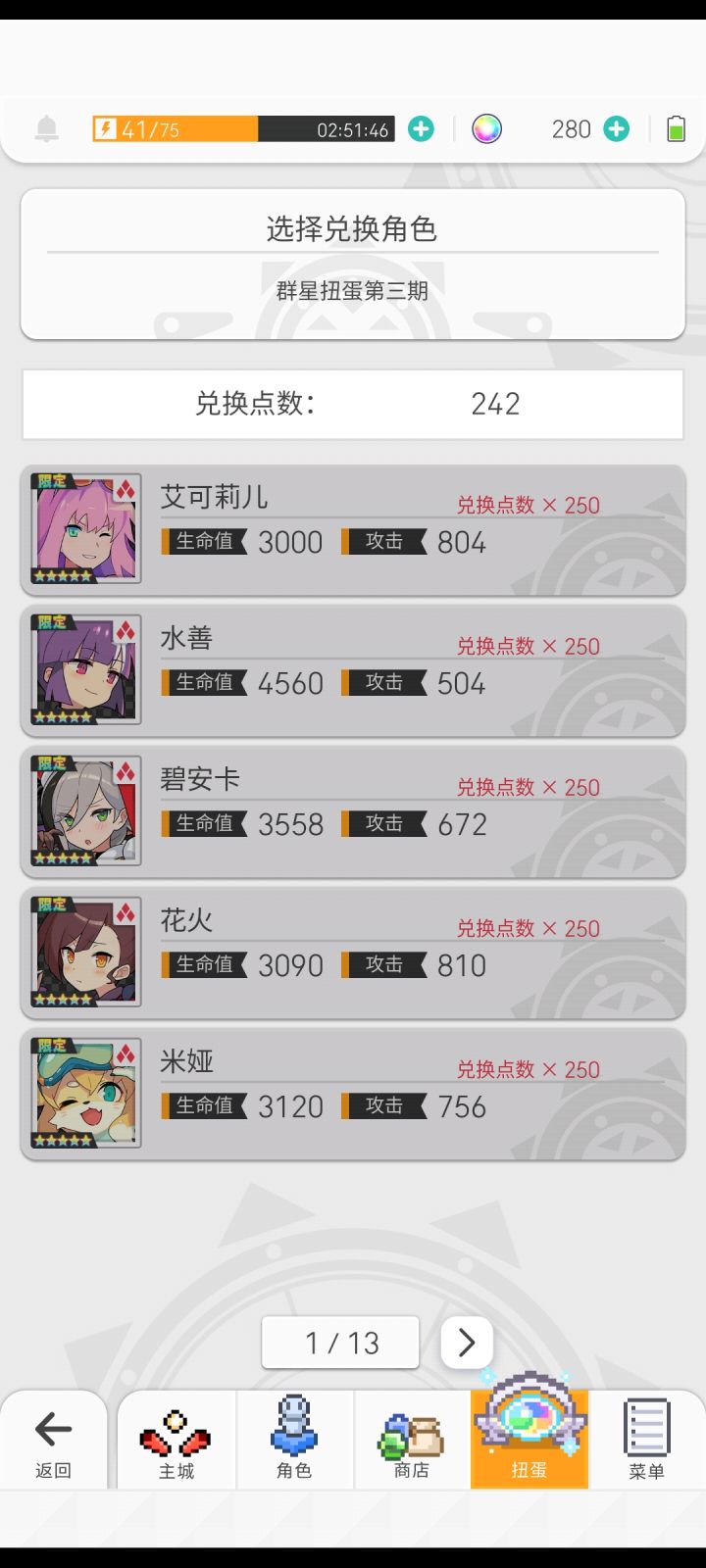 今天更新圣诞无音,2个送得单抽抽到了!嘿嘿看了下打pf的,可以配一套全自动的挂机pf套吗?这是我的角色池...浮空连击自动打不出伤害,每次打活动本啥的都得手动才打的快
