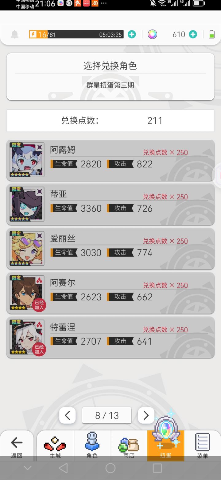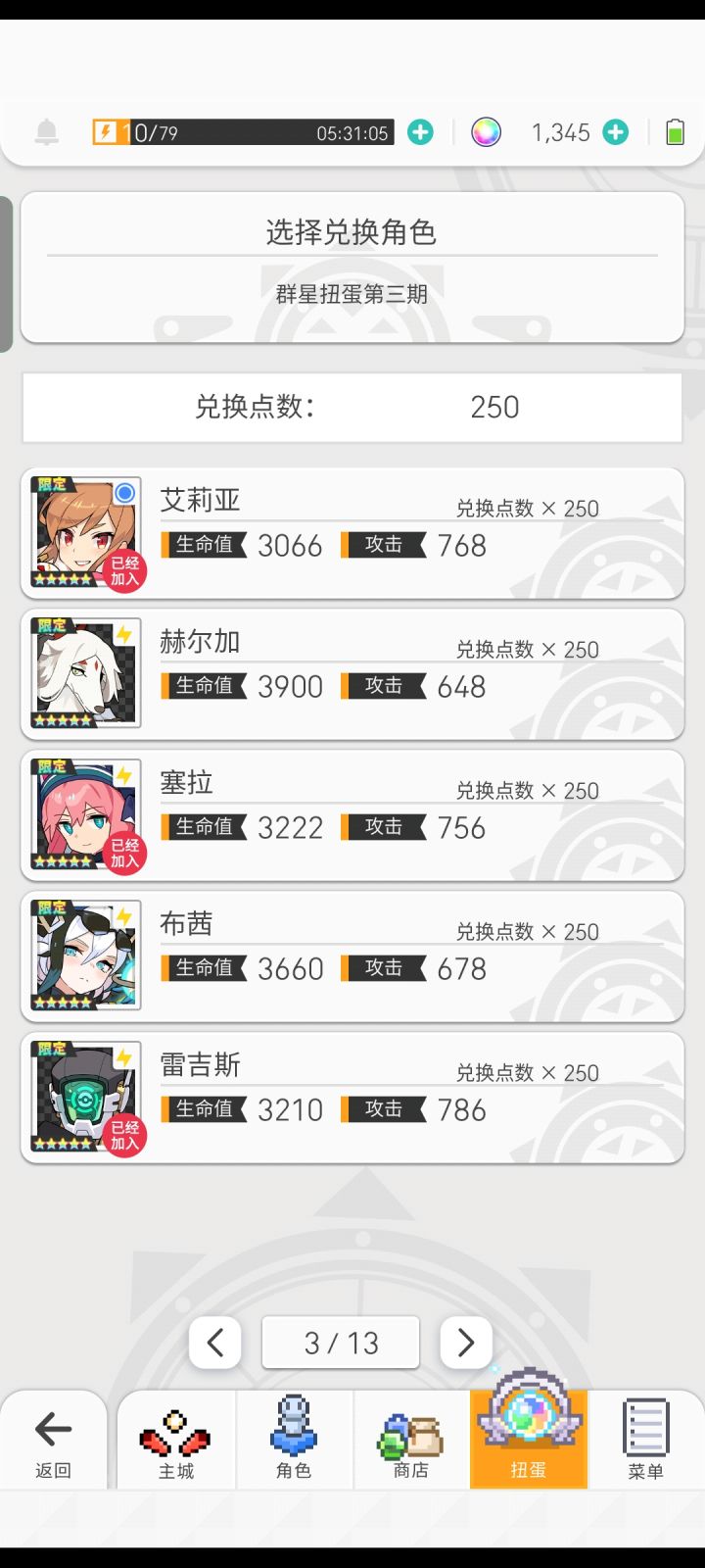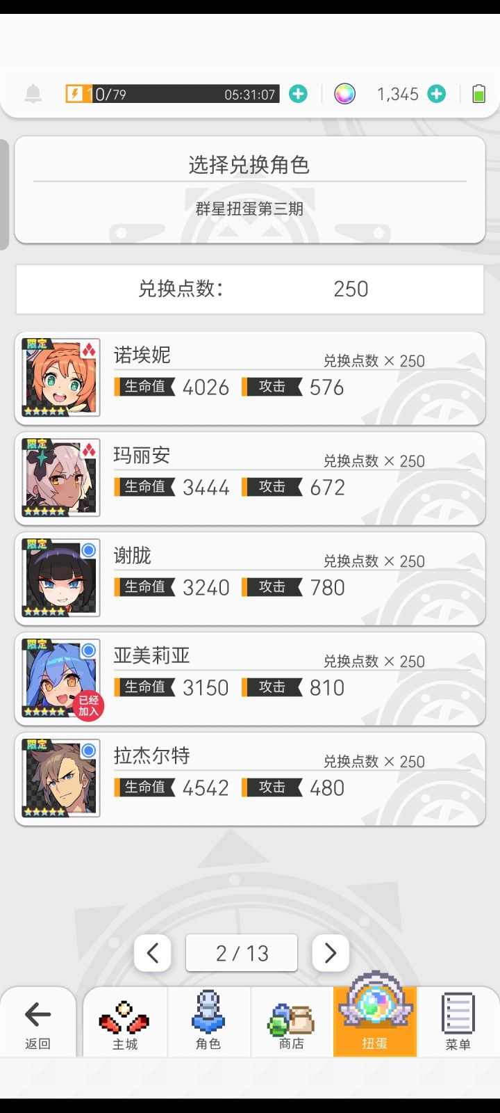 可选的五星以及已经有的五星如图,群星扭蛋已经井了,打算选圣龙,看看明天最后一个免费十连出不出,不出就选了