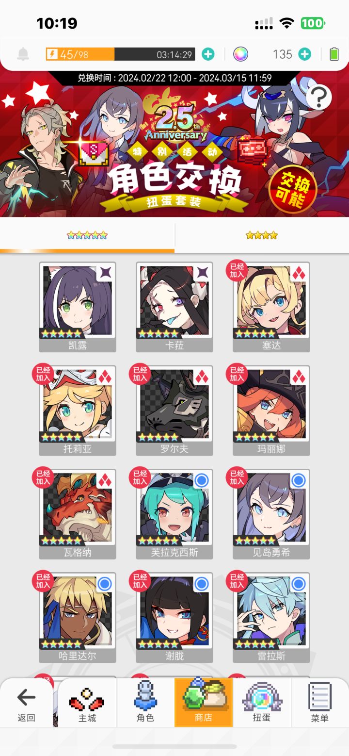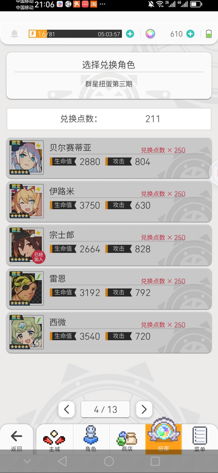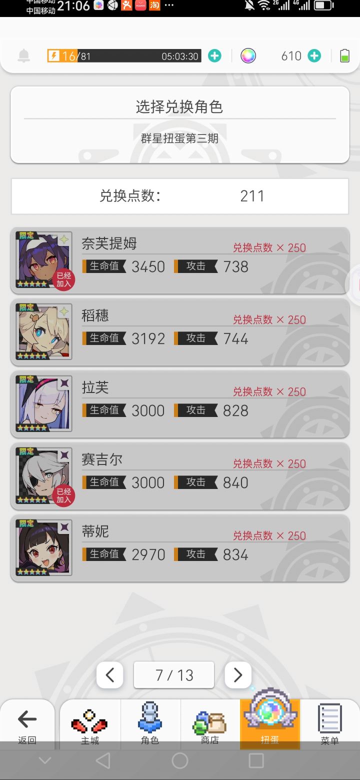 可选的五星以及已经有的五星如图,群星扭蛋已经井了,打算选圣龙,看看明天最后一个免费十连出不出,不出就选了