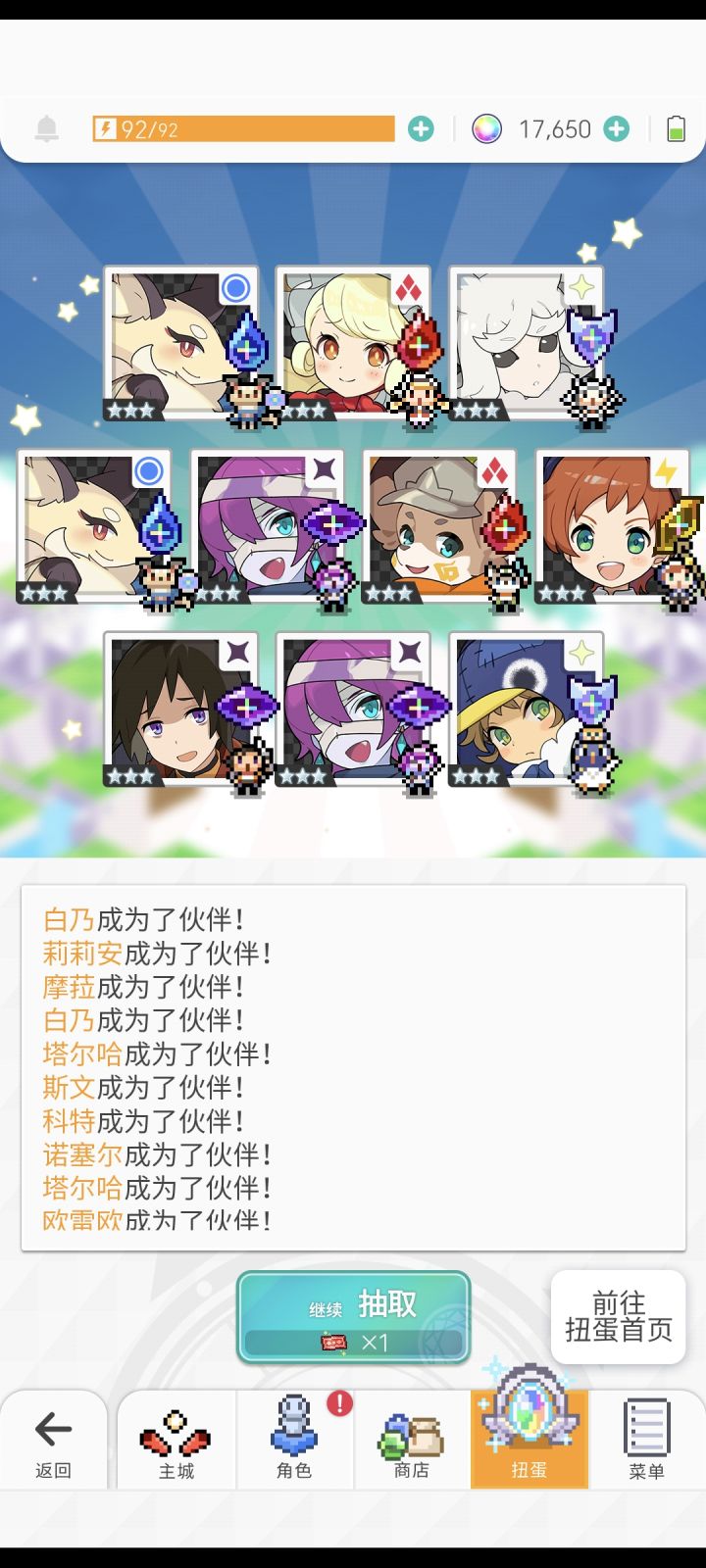 第一次玩这种游戏,看攻略看的迷迷糊糊的,看自己乐享扭蛋也没抽出来暗gay,但是好像也有几个蛮强力的角色,现在下一步是什么啊。。在扩充一下角色还是可以屯钻了啊。。顺便再问一下各位佬,如果角色够了的话请帮忙配一下队,谢谢各位啦OvO