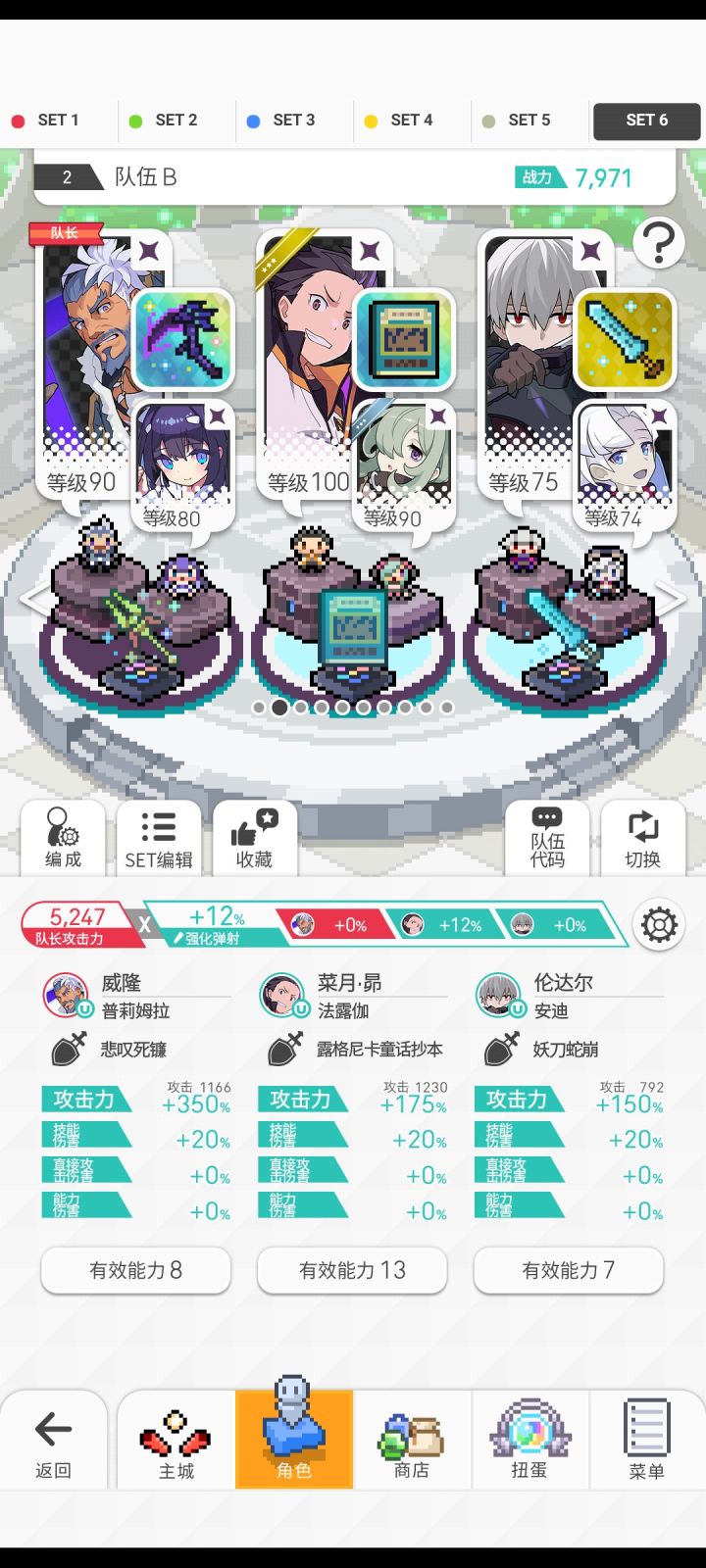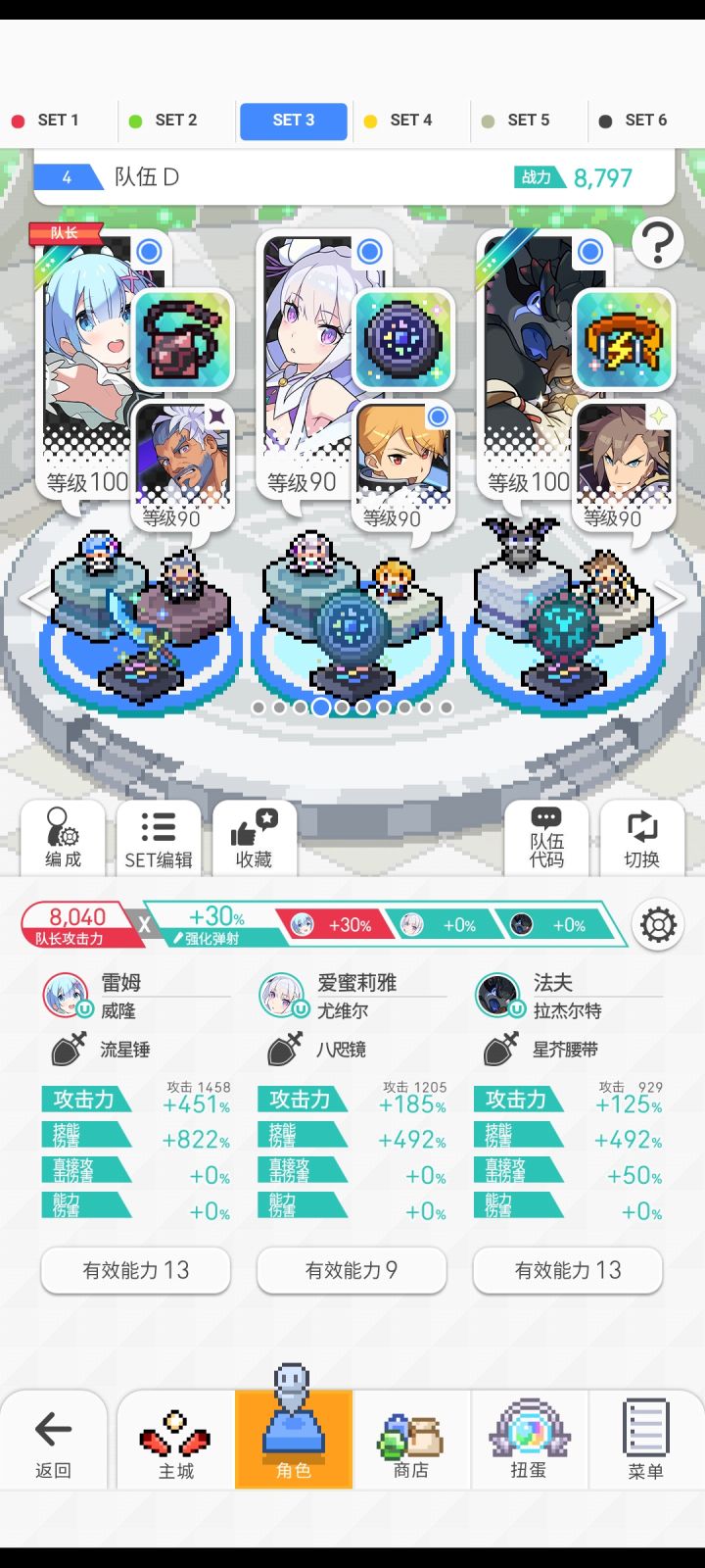 re0复刻入的坑,前三图是我目前凑出来的3套还能看的配队,想问问大佬们后续再提升是只有换装备跟突破等级了吗?二板目前主c都开了一点但是感觉后面的提升幅度不高,很好奇大佬们9位数的贡献都是怎么堆出来的,目前被ai带基本只能打2000多w贡献目前光队凑合配了个技伤的,看攻略好像我这能配光pf了,雷pf好像也可以,风队是真不知道怎么配,感觉整体伤害就挺孱弱的五星就这么多,四星半齐不齐的,求配队求指