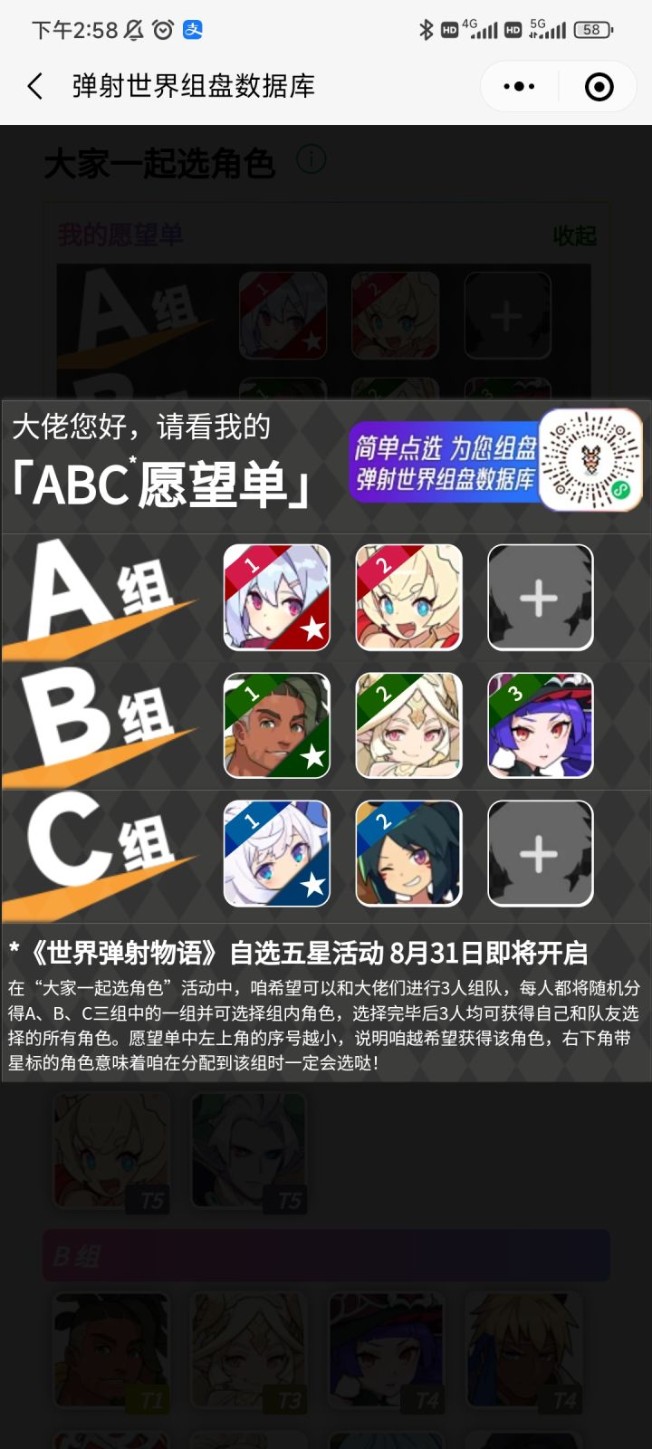 A组想要光王子、风奶,B组xcw(毋庸置疑),C组msr,有一起的吗,有的话加扣扣1471699273,我出一个体力号一起