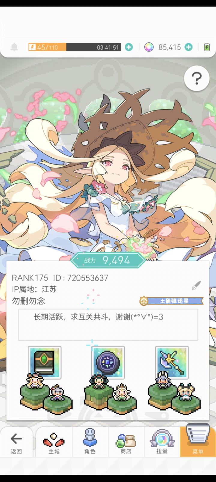 本人长期玩世界弹射物语,欢迎各路长期稳定游玩的好友,目前还有50几个空位😜,看到以后会马上关注滴,如果有什么不懂想问的也可以问我,知道的会尽全力解答ID:720553637