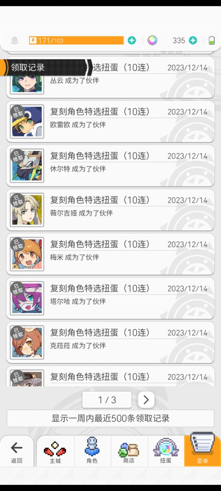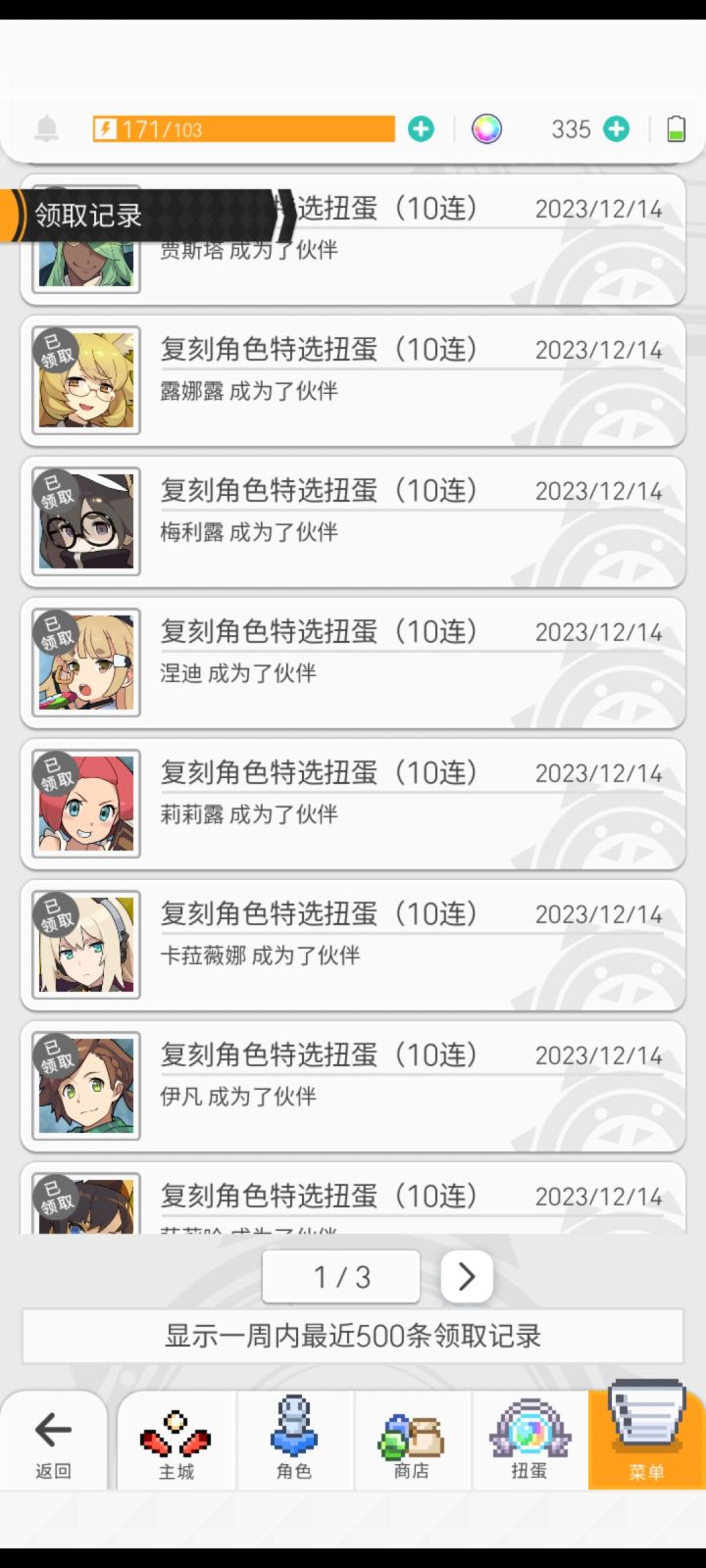 第一天免费十连的收获