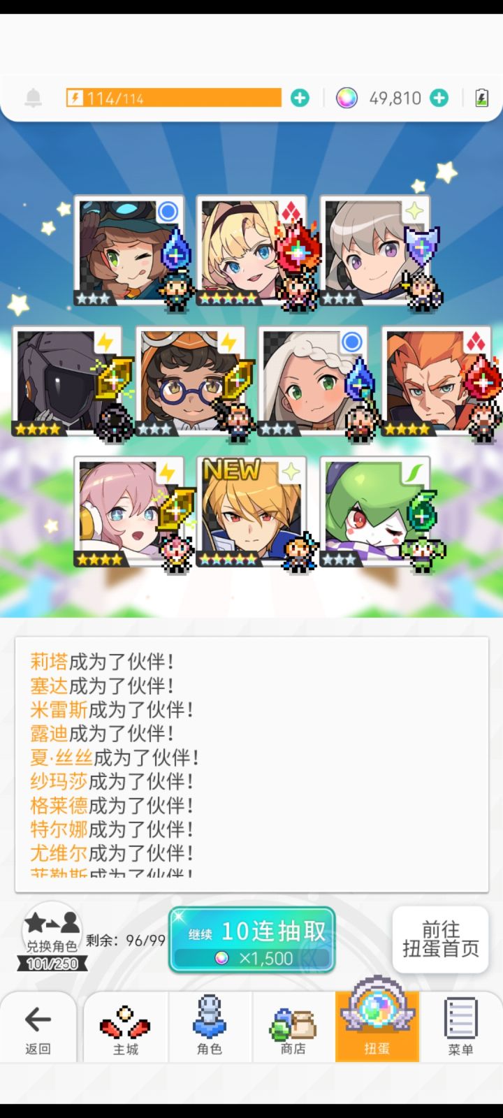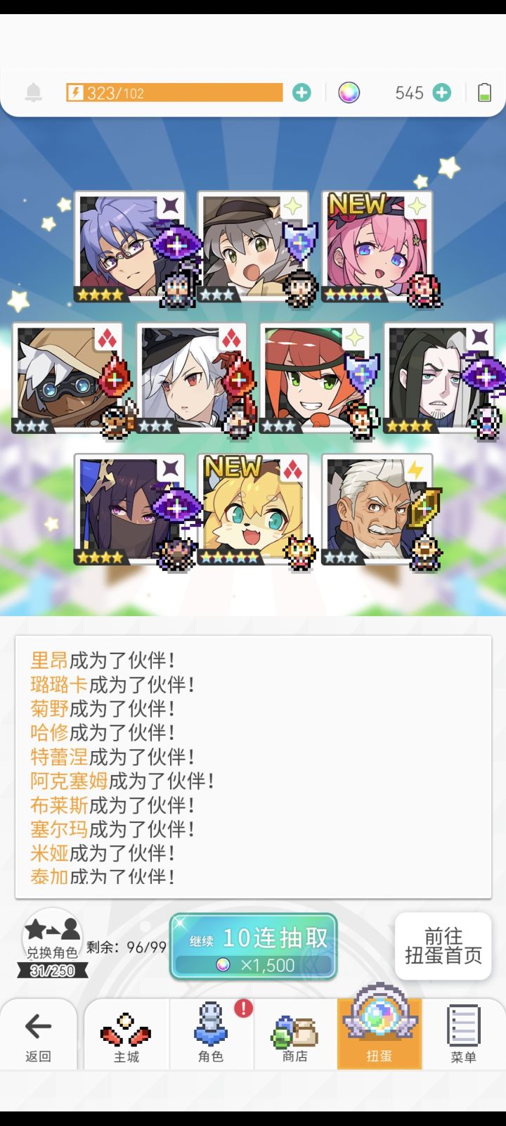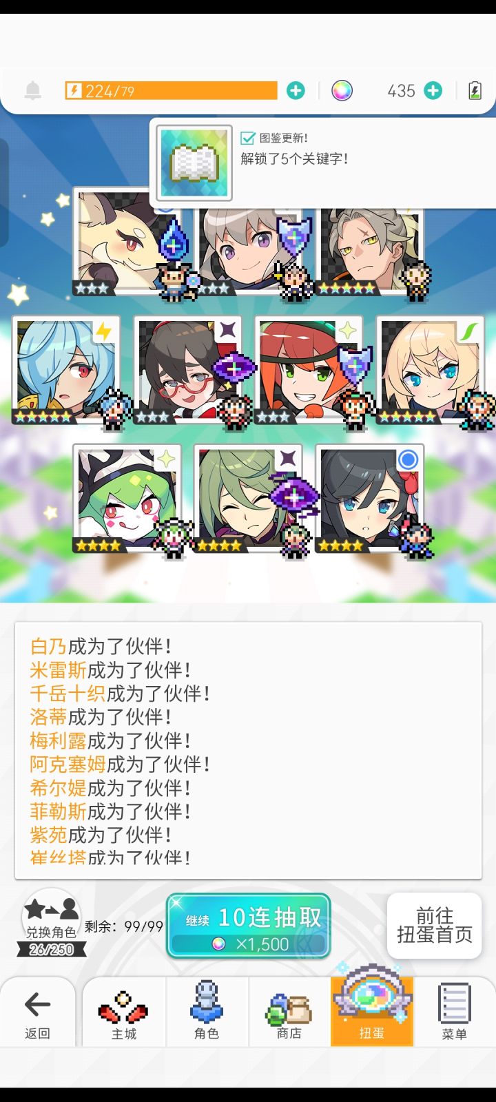 第一天抽到101抽,正好拿下两个,七哥和光飞燕,直接能上班,开心。第三天的免费十连第一下就出了动画,没有热血躲避球还是新的up角色,星gay,加上上次常驻池出的暗牛奶,再也不用为女帝感到担忧了,又是可以爽玩了。继续每日免费十连加付费单抽,再不济也可井出院长,要提前出了还能留几次免费给1.5+0.5复刻池捞一手礼黑,完美原本是打算如果101抽后面如果没有出new了,就井一个然后碎一个也