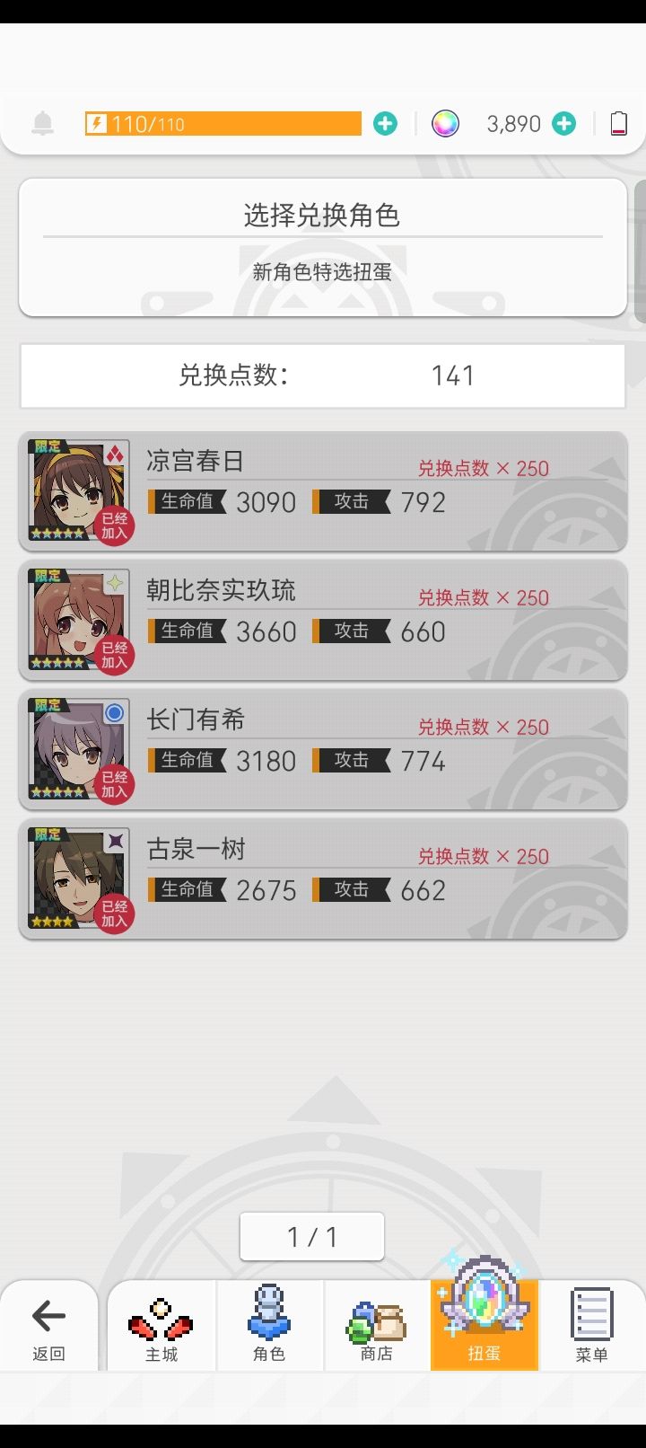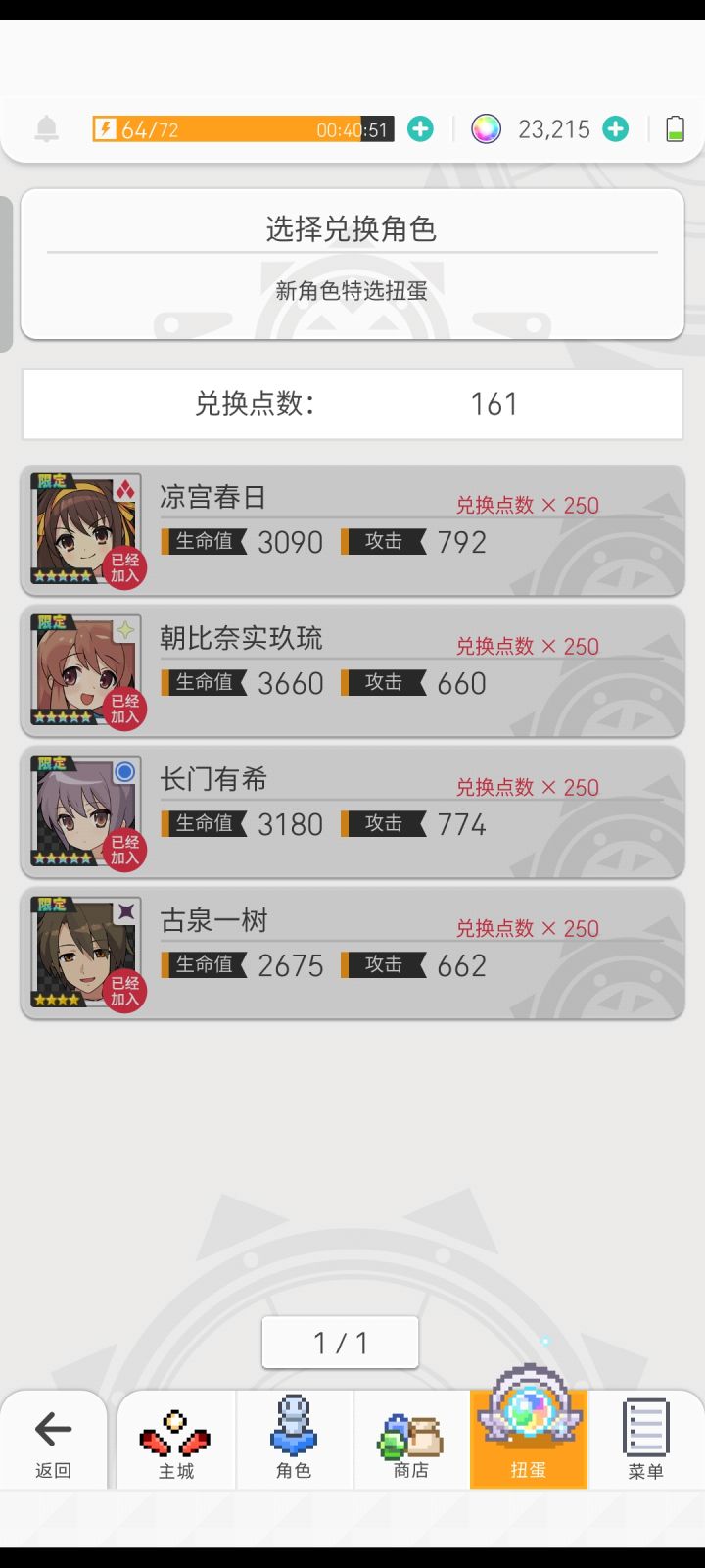记录凉宫池 又是一井没什么好说的,熟悉的井250抽就出了3金,弹宝你做的好呀!对于井我已经麻木了本想着抽1井2的(没错用付费井),在246抽出了长门,那就省一个付费井吧😄