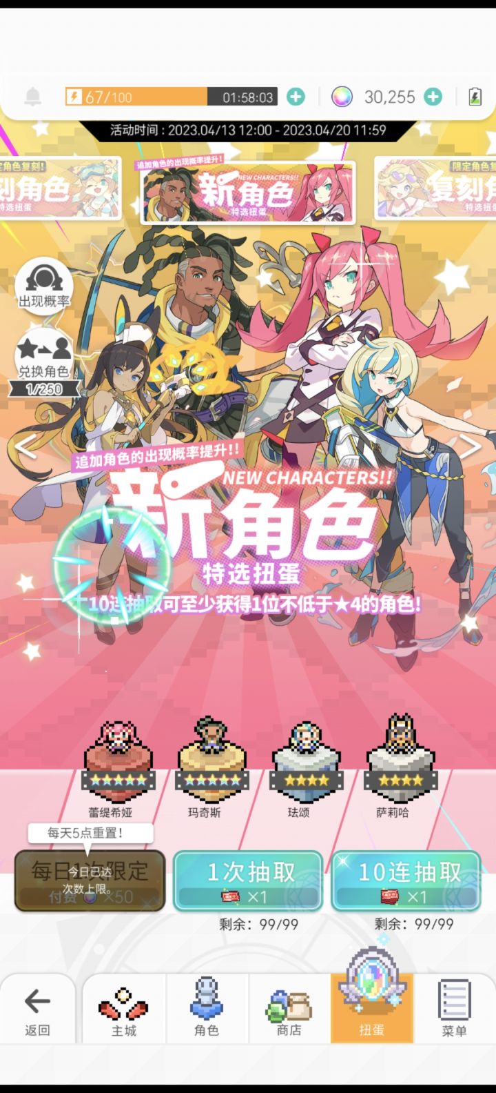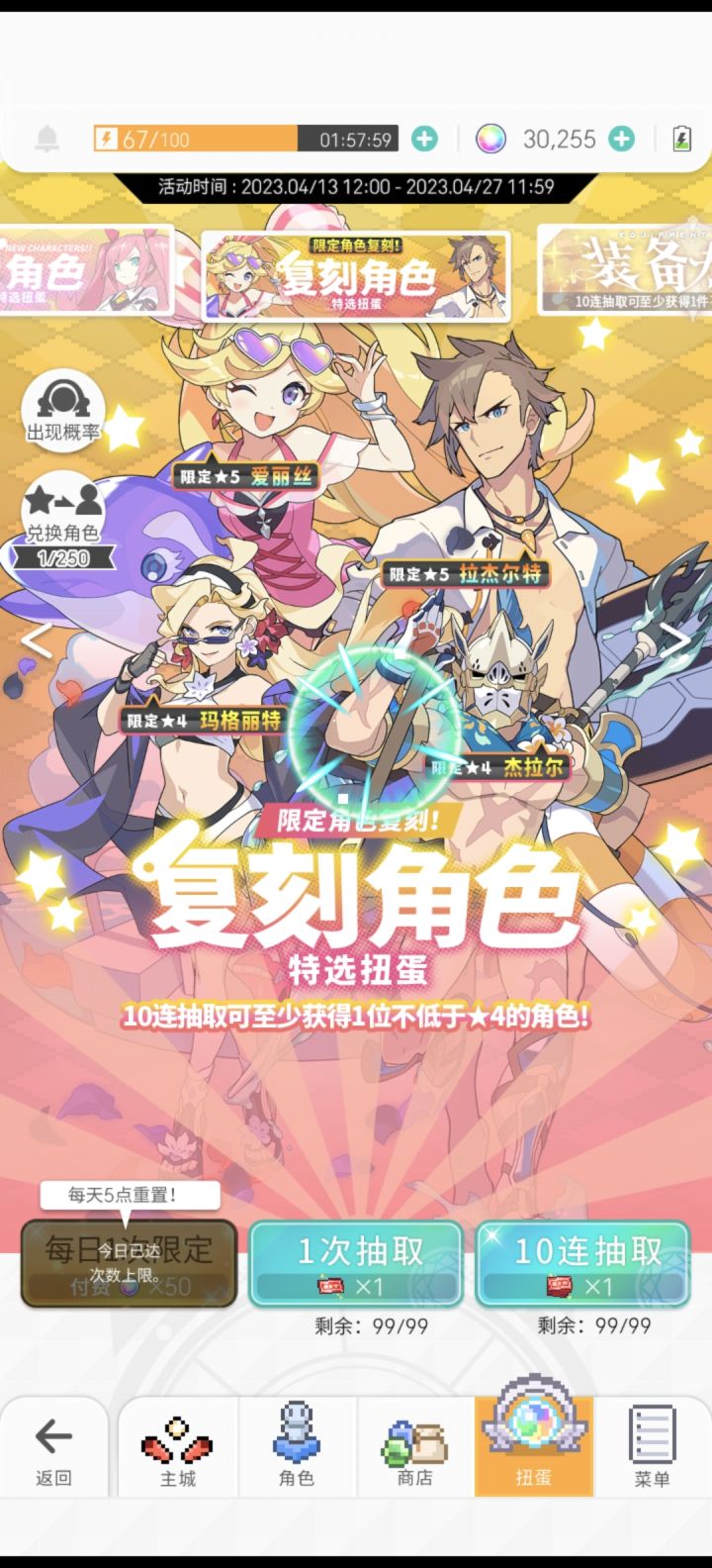 新手保护期,250➕免费九十抽,两个鲤鱼,两个礼铳,换了个lcw,我已经很知足了!里脊池子还是算了,(诶好像把免费的投进里脊四人池也行,运气好能来个黑猫配我的暗铳就好)萌新第九天感觉纯纯痛苦号,box不全没法抄作业,打副本只打资源,也就抽卡➕福利➕剧情很吸引我了(话说怎么都第七章了莱特都回去了还是个小动物呢,我还以为搞完第七章的十四关就完结了呢,剧情我好像是第四章没好好看,前两章没啥印象,第三章就是热血,第四章是协助正攵变,第五章解救歌姬,第六章跨越种族の依恋有刀但是不太多,第七章完完全全看的很虐,好不容易跨过千山万水回来了结果化作烂柯人那种,后面还有背叛,援助,牺牲等剧情,好看但是很难受,关键他的剧情反转反转再反转,真的吹爆)