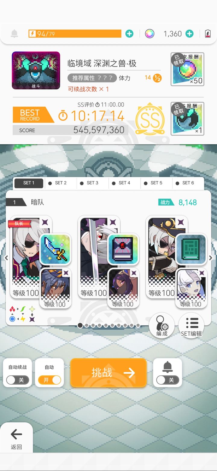 第一次满通幽悬域,地狱暗也第一次就ss通,abs也直接ss满通,爱死光弹了