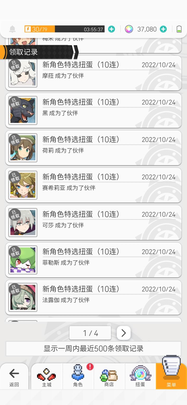 今日抽卡记录