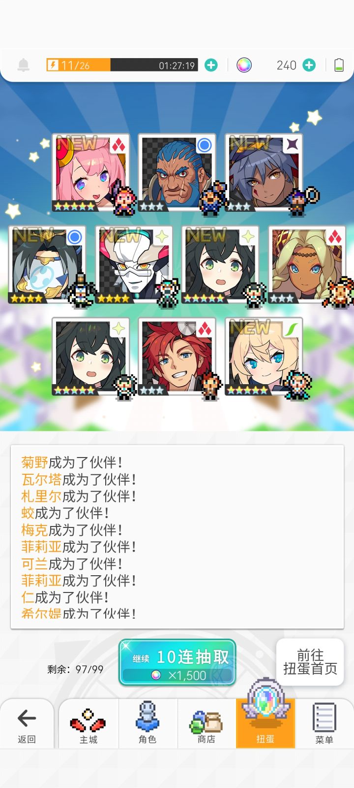Yeah!差点儿忘记分享十连啦。大号没出货忘截图了,小号运气真好qwq